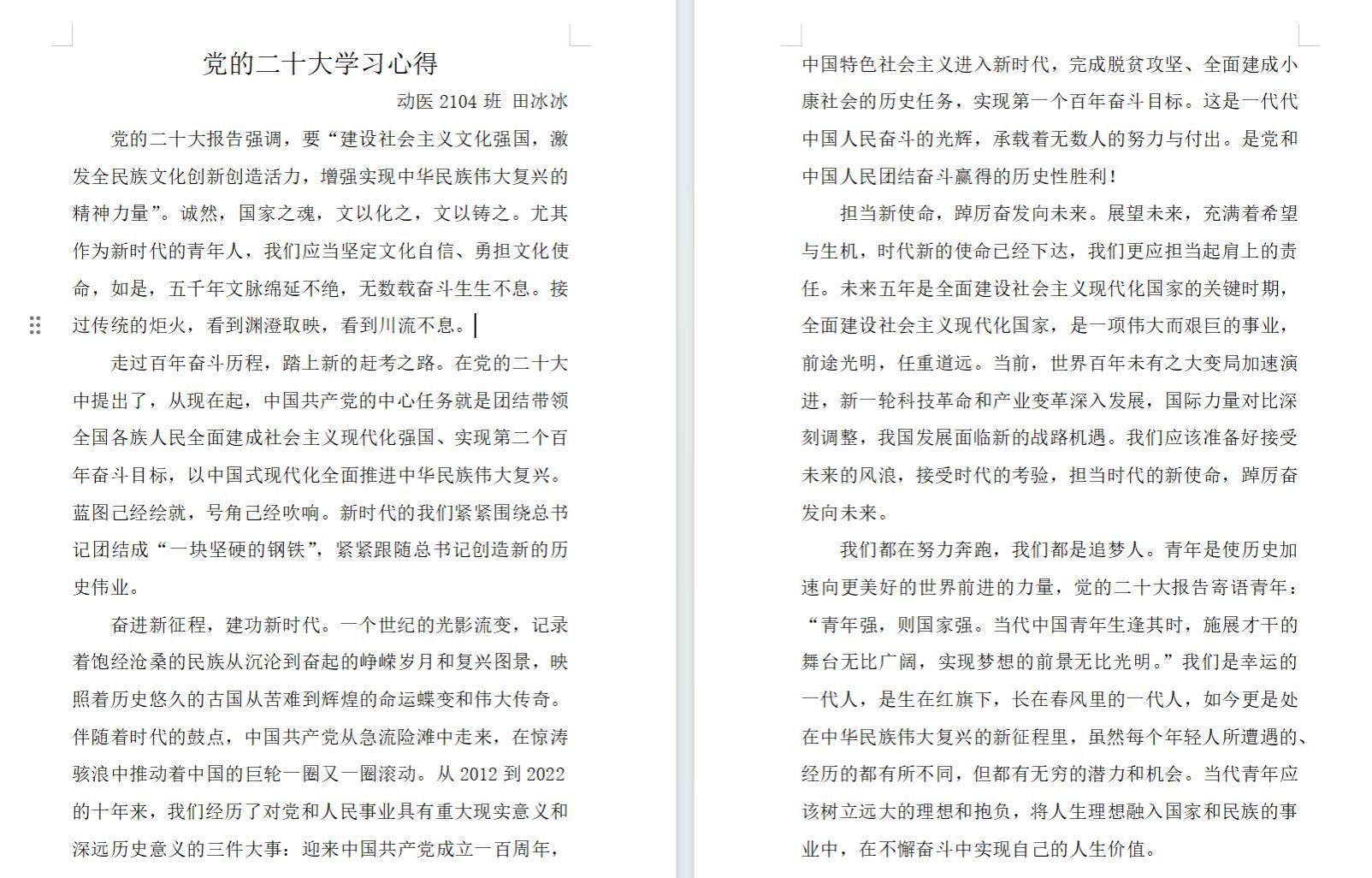动物医学2104班田冰冰 学习党的二十大心得体会
