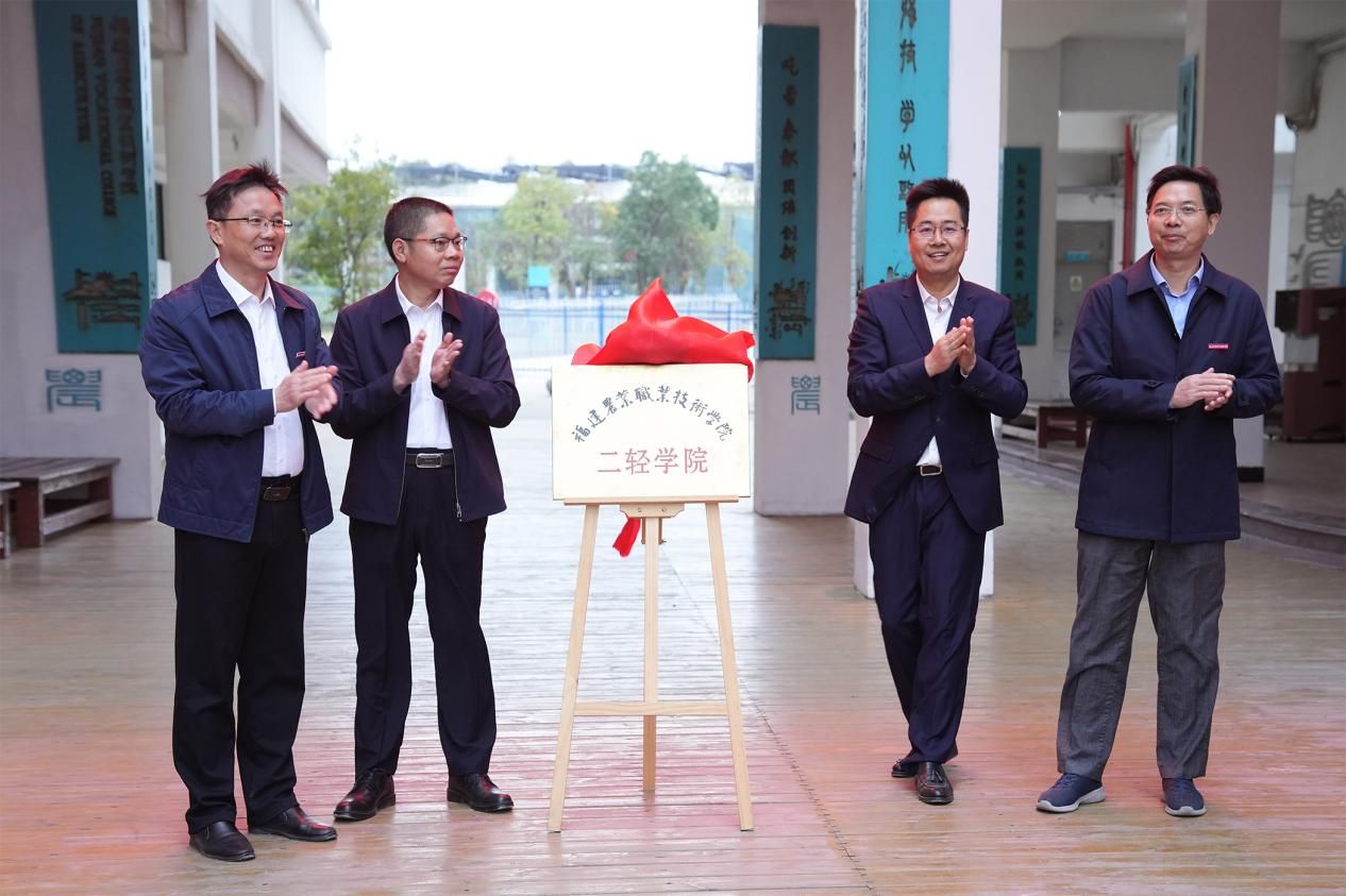 12月1日,学校在相思岭校区教学2号楼隆重举行二轻学院揭牌仪式。省委教育工委委员、省教育厅党组成员、副厅长王飏出席活动并致辞,学校领导班子成员、中专部班子成员、相关部门负责人以及师生代表参加活动。活动由学校党委书记杨振坦主持。