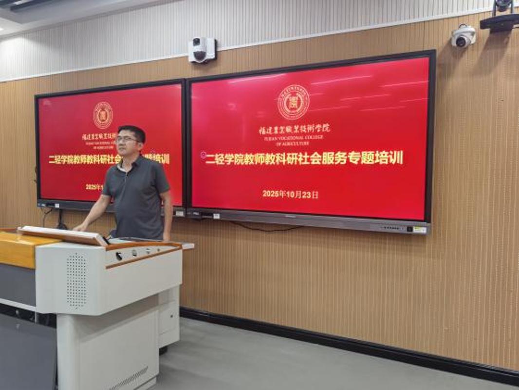 为深化职业教育改革,提升教师专业素养与创新能力,近日,二轻学院于十月师资培训活动中特邀彭飘林等专家开展培训,围绕“社会服务(专利申请及转化实践)”与“技能大赛(赛道解读与参赛技巧)”两大主题,为教师队伍赋能,助力学院高质量发展。