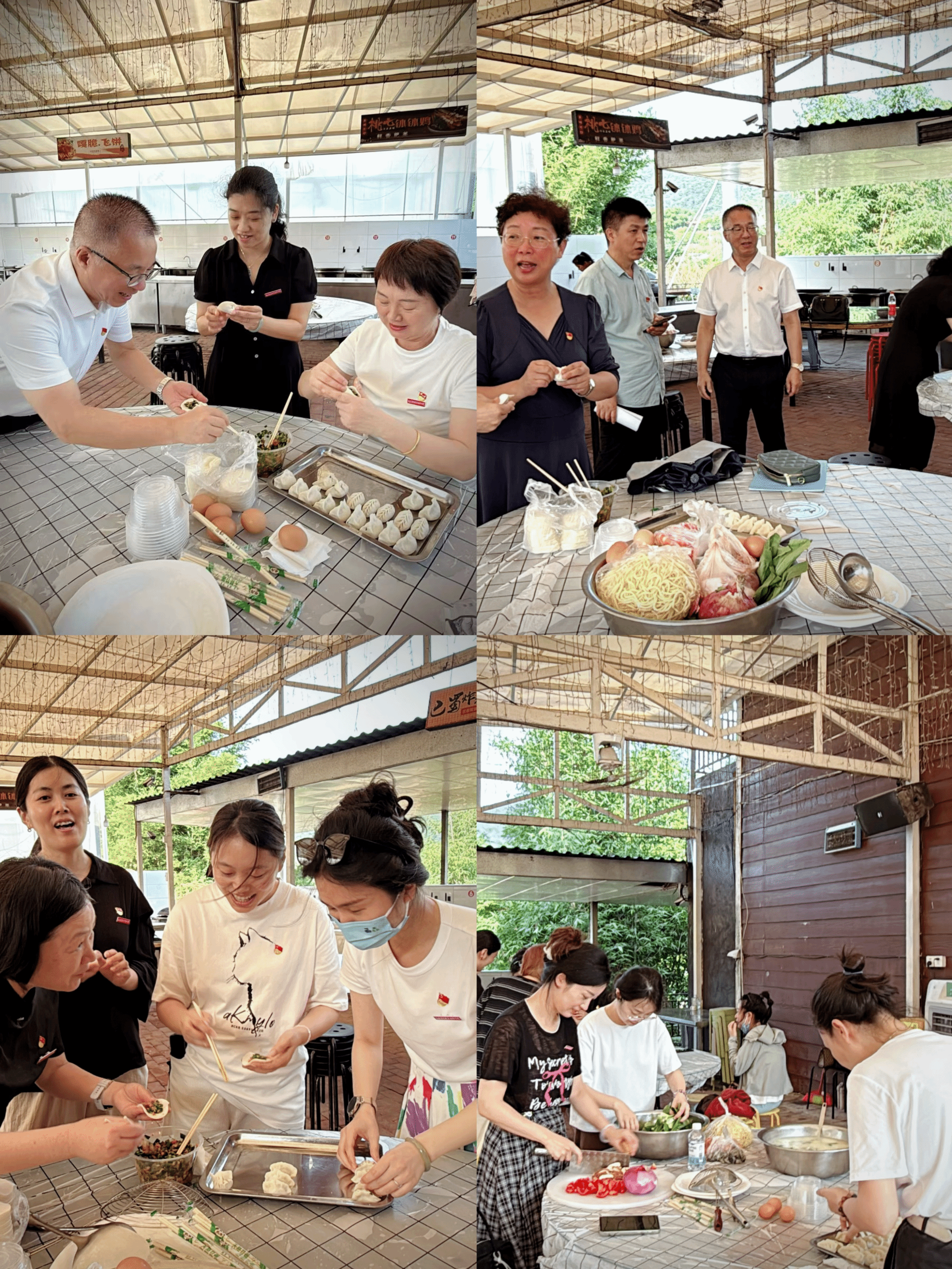 当同学们在操场上热火朝天得进行着游戏的同时,二轻学院的全体教师党员们也没有闲着,为加强与学生的沟通联系,老师们精心为同学们准备了一场“美食共制”特别活动,提前在创业园制作起了美食。游戏环节结束后同学们也马上加入了美食制作环节师生们纷纷大显身手,共同动手包饺子、烹饪各式佳肴。大家一边制作美食,一边交流互动,分享着校园里的生活,在这里没有师生间的隔阂,只有朋友般的友谊。当一盘盘热气腾腾的饺子和美味可口的菜肴端上餐桌时,大家围坐在一起,共同品尝着自己的劳动成果,感受着舌尖上的快乐老师认真倾听同学们对校园生活的感悟未来的憧憬,耐心地给予肯定和鼓励这些不经意的“谈心谈话”,让创业园里弥漫的不仅是饭菜的香气,更充满了温暖和信任。