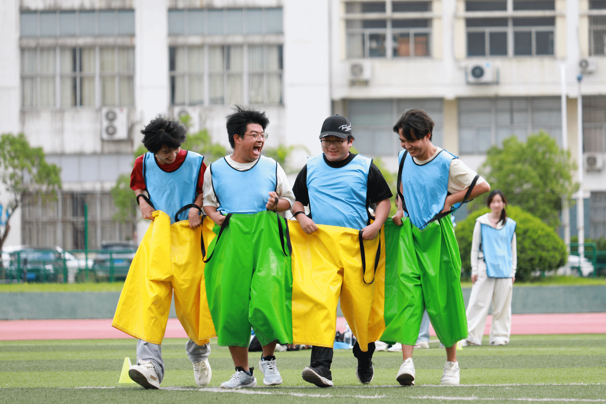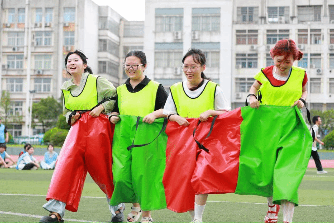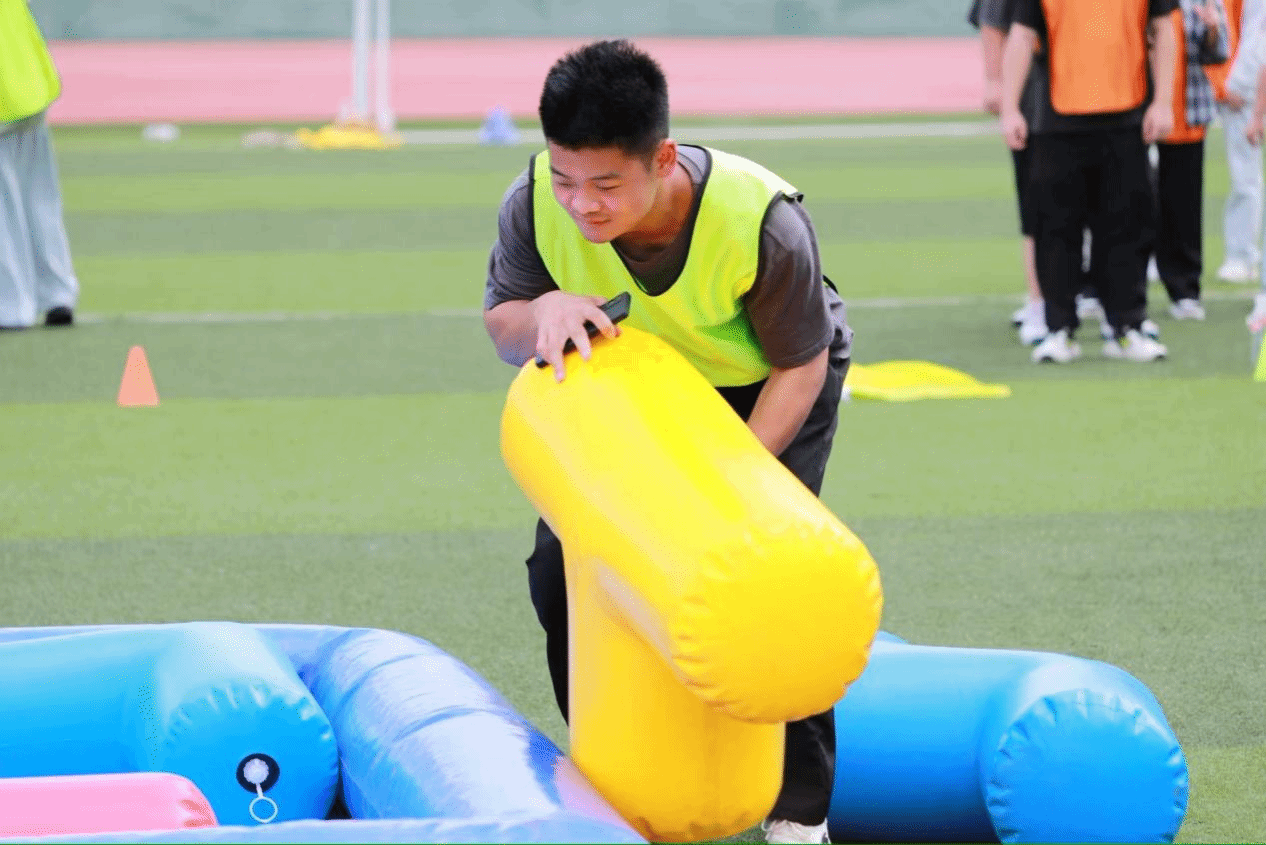 活动伊始,各班级迅速集结,以饱满的热情投入到游戏环节中。两人三足考验默契旱地冰壶”比拼策略俄罗斯方块”激发创意......赛场上,同学们齐心协力、默契配合,跌倒时互相搀扶,挑战时集思广益。此起彼伏的加油声与欢笑声交织,青春的活力在绿茵场上肆意绽放。