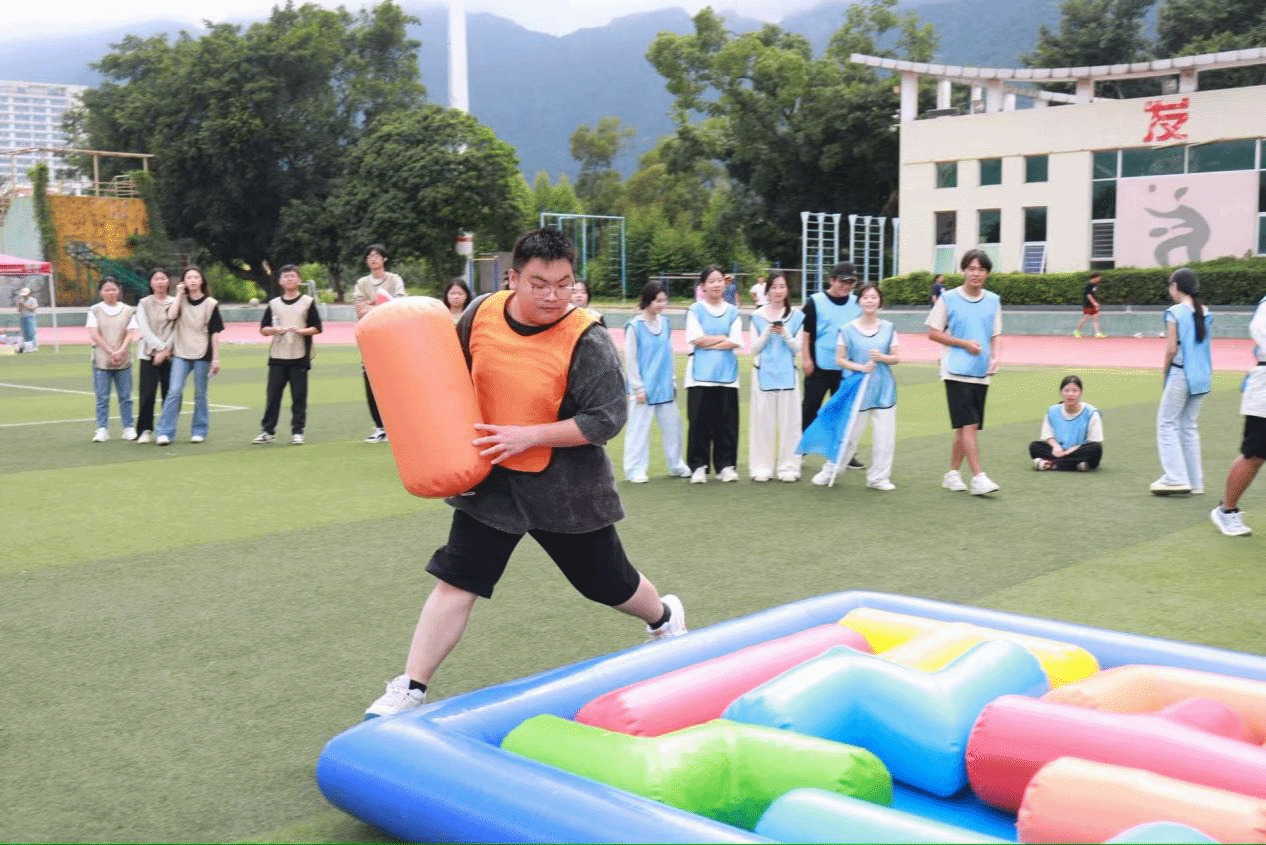 芒种刚过,暑意渐起。6月11日下午,二轻学院全体学子齐聚相思岭校区操场,在微的夏日暖阳中,共同参与了一场别开生面的班级素质拓展活动。
