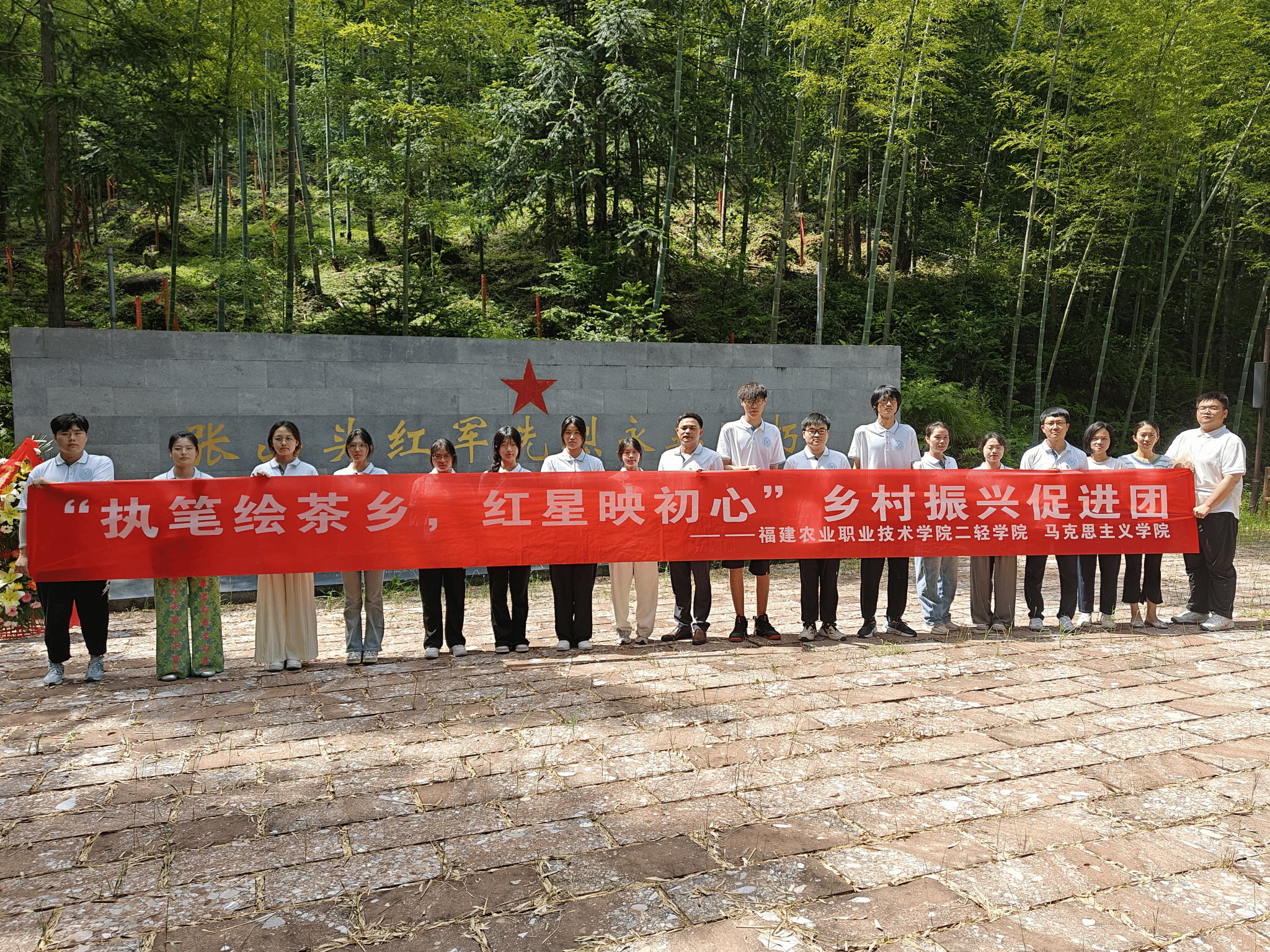 武夷山作为闽北苏区“红色首府”和福建“红色都城”,承载着厚重的革命记忆。6月26日-27日,二轻学院组建“执笔绘茶乡,红星映初心”乡村振兴促进团踏上这片红色热土,师生们先后参观了闽北革命历史纪念馆、新四军赤石暴动纪念馆、张山头红军墓群等地,通过"沉浸式学习+专题研讨"的创新形式,开展为期两天的红色文化实践教育活动。