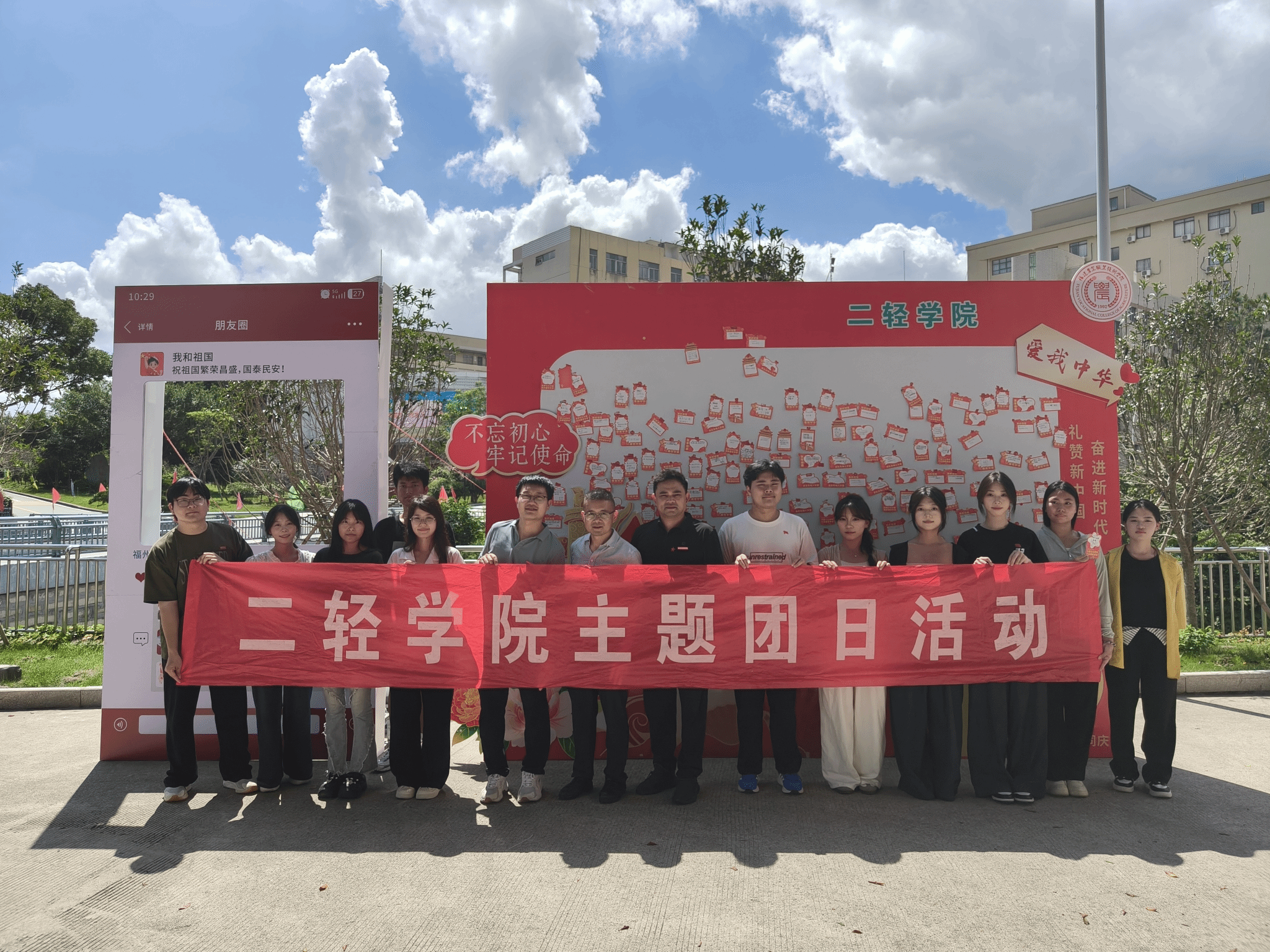 9月28日,在新中国成立76周年与中国人民抗日战争暨世界反法西斯战争胜利80周年的重要历史时间交汇点,二轻学院于攻关桥头开展“我为祖国送祝福”主题活动,以青春行动抒发爱国情怀,共贺祖国华诞。现场吸引数百名师生踊跃参与。