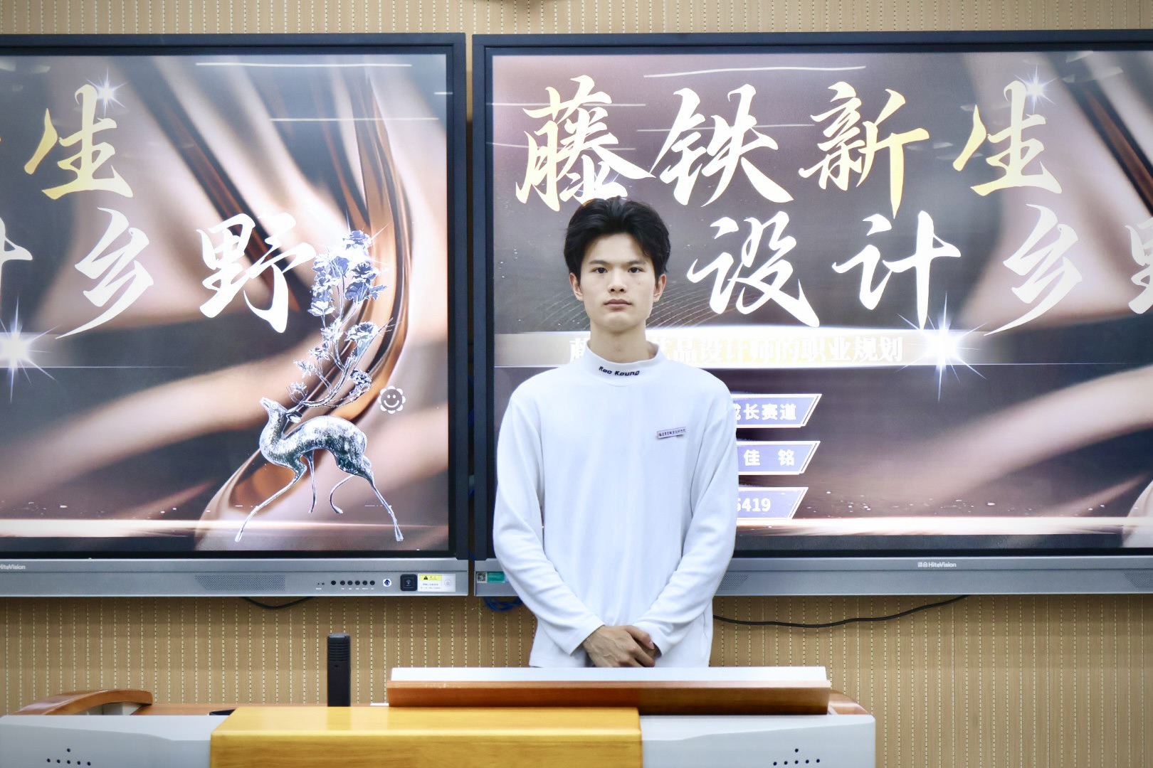 比赛现场气氛紧张而热烈,来自各专业的12名参赛选手依次登台,展开精彩角逐。赛事分为个人展示与答辩两个环节。在个人展示环节,选手们借助精心准备的PPT,系统阐述了各自的职业目标、实施路径、可行性分析以及动态调整方案。