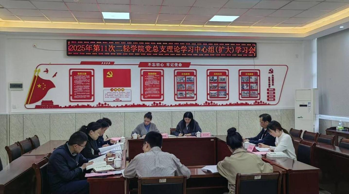 11月4日,二轻学院党总支召开理论学习中心组(扩大)专题学习会,专题学习《习近平谈治国理政》第五卷中关于中国式现代化的重要论述,重点围绕“以中国式现代化全面推进强国建设、民族复兴伟业”主题开展研讨。会议由二轻学院党总支副书记(主持工作)张一宁主持,学校党委副书记王振亮巡听旁听指导。