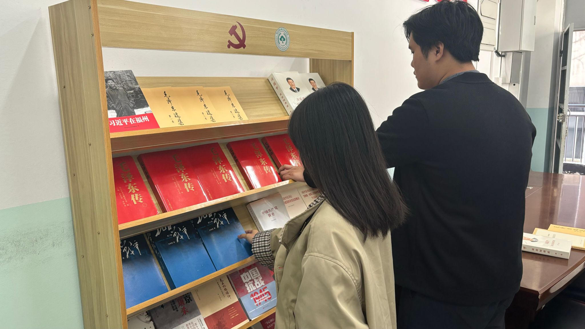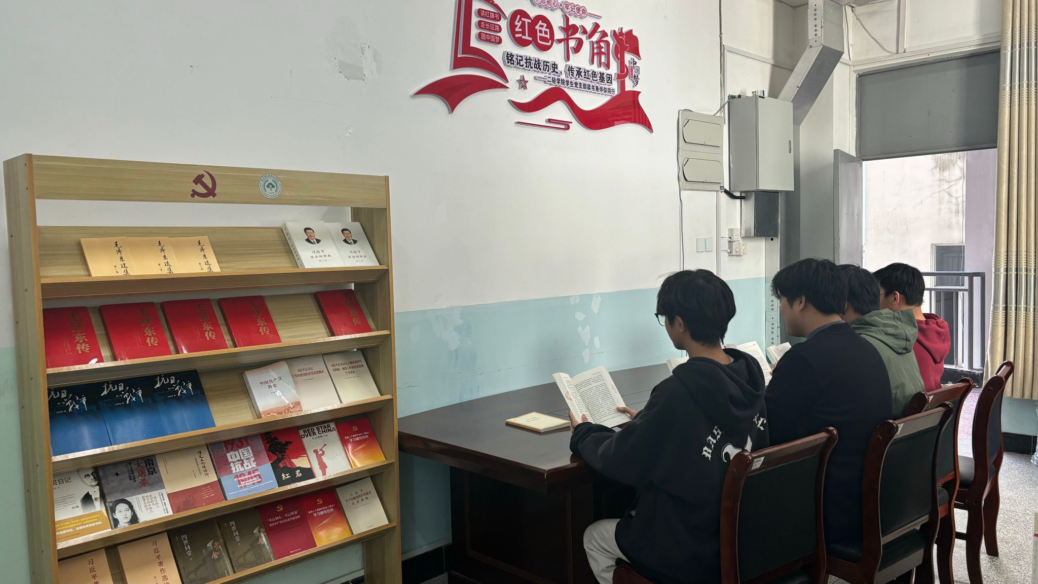 恰逢中国人民抗日战争暨世界反法西斯战争胜利80周年之际,为深入学习贯彻党的二十大精神,引导党支部全体师生铭记历史、缅怀先烈,传承红色基因,培育新时代青年使命担当意识,二轻学院学生党支部精心打造的“党员读书角”正式成立并启用,为全体师生搭建了一个沉浸式学习、常态化交流的红色阵地。