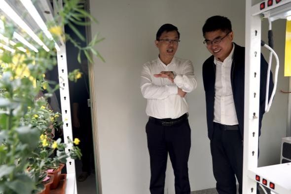 在福建金品农业科技股份有限公司,何东进一行在邵贵荣的陪同下,参观了种子成品库、包装车间、气候室及授粉室,详细了解了企业在绿叶菜种子研发方面的创新成果。