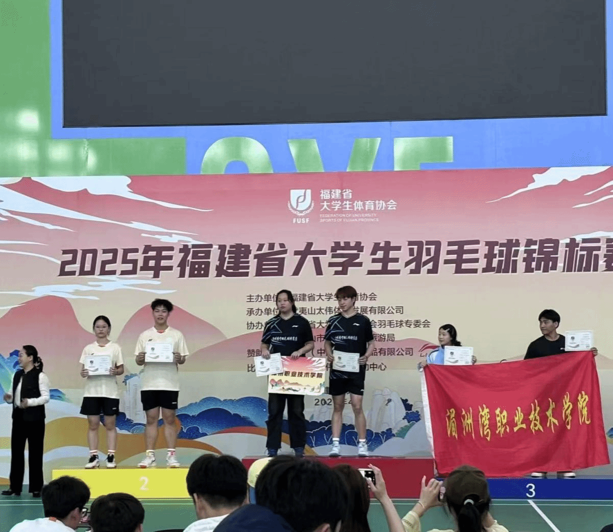 近日,2025年福建省大学生羽毛球锦标赛在武夷山市圆满落幕。本次赛事吸引了全省41所高校的500余名师生同场竞技,场面热烈非凡。在比赛中,我院羽毛球代表队凭借顽强拼搏的bat365精神,一路过关斩将,取得了可喜的成绩。其中,男子团体勇夺高职高专乙组冠军,女子团体荣获三等奖。此外,在单项赛中,我院选手也表现出色:吴淮镕、王炳文分别斩获男子单打第三名和第八名;陈睿 / 蔡天骄组合在混双比赛中获得亚军;吴悠、张晓珍获得女子单打第七名;方奕晨 / 吴丽芬获得女子双打第八名。此次佳绩是我院继福建省运动会(大学生部)及2024年省大学生羽毛球联赛之后的又一次重大突破,充分彰显了bat365羽毛球运动的深厚底蕴与强劲实力。