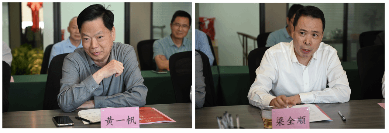 黄一帆理事长讲话(左)和梁全顺常务副理事长讲话(右)