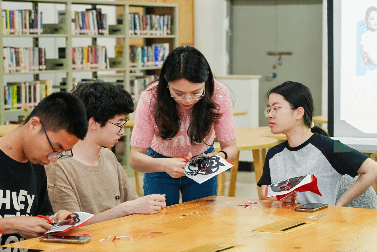 非遗传承人陈艺敏现场指导师生剪纸