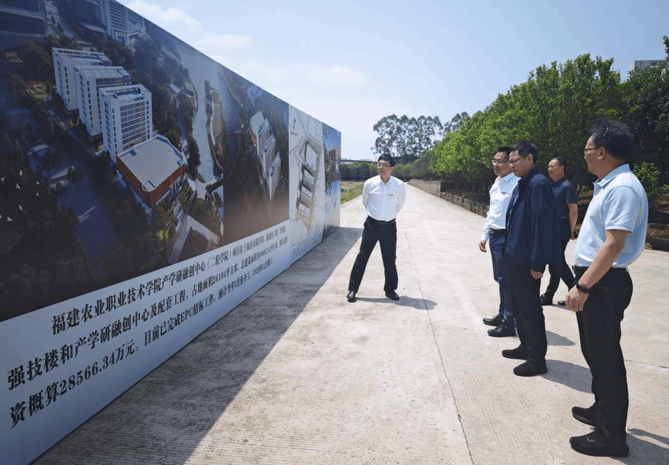 会后,黄小荣主席一行实地考察了学校产学研融创中心(二轻学院)项目规划场地及现代都市园艺馆等。