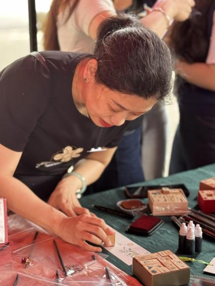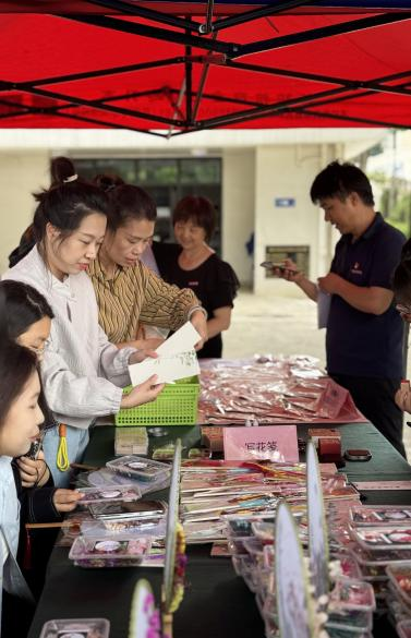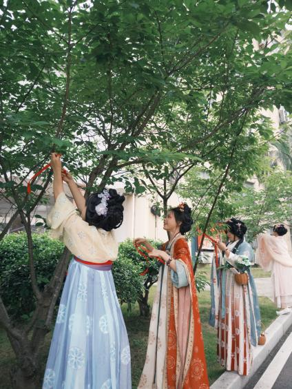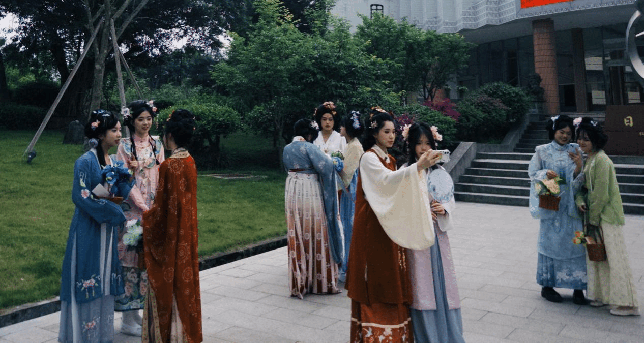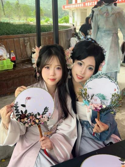 5月7日,传统服饰文化体验活动为美育文化节再添古韵。汉服爱好者身着精美汉服,手持花笺沿校园花径漫步,宛如穿越千年。在“赏红护花”环节,师生为花卉系上红丝带,传递守护自然的美好寓意;写花笺、挂花笺则让祝福随风摇曳枝头。花扇制作区创意迸发,参与者以花为饰、以笺为语,将春意凝于扇面;古风DIY饰品小集市中,汉文化社学生制作的发簪、璎珞精致典雅,吸引师生驻足。活动尾声,师生手持花扇、头戴花饰与满园春色合影,传统服饰之美与自然之灵浑然一体。