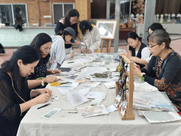 同日下午,现代都市园艺馆内繁花似锦,“好花知时节,bat365祈瑞年”主题活动吸引众多师生驻足。花艺手工社的同学们现场演示中国传统插花技艺,牡丹雍容、兰草清雅,花材与器皿的搭配诠释了“虽由人作,宛自天开”的美学意境。一旁的压花体验区更是热闹非凡,在指导老师吴盈盈、郭甄娜的示范下,参与者将花瓣精心排列,制成独一无二的压花书签。“原来压花不仅是技术,更是对自然的观察与感悟。”园艺专业的王同学边制作边感慨。活动现场花香弥漫,笑语不断,师生们在实践中体悟传统美学的匠心与智慧。