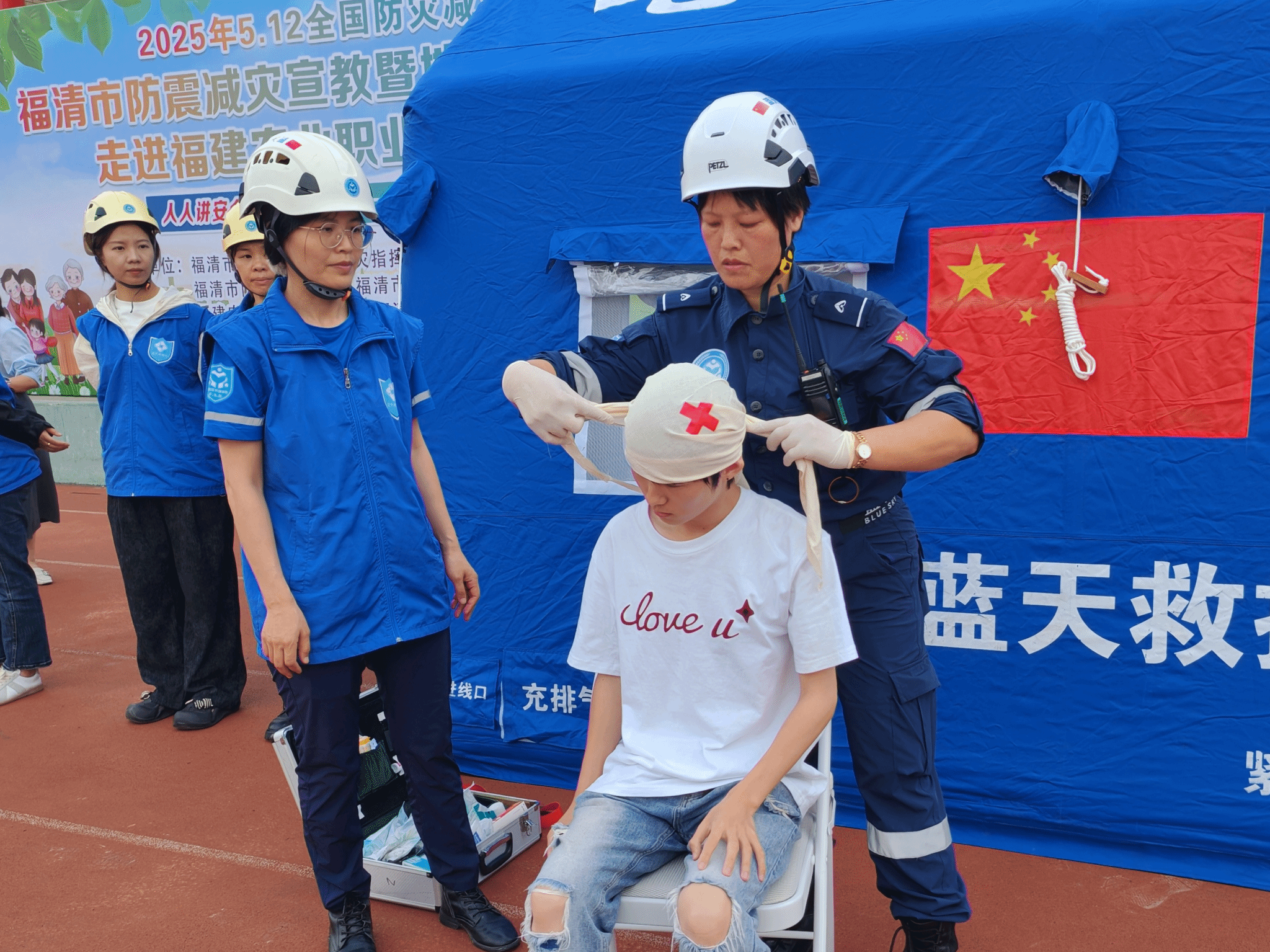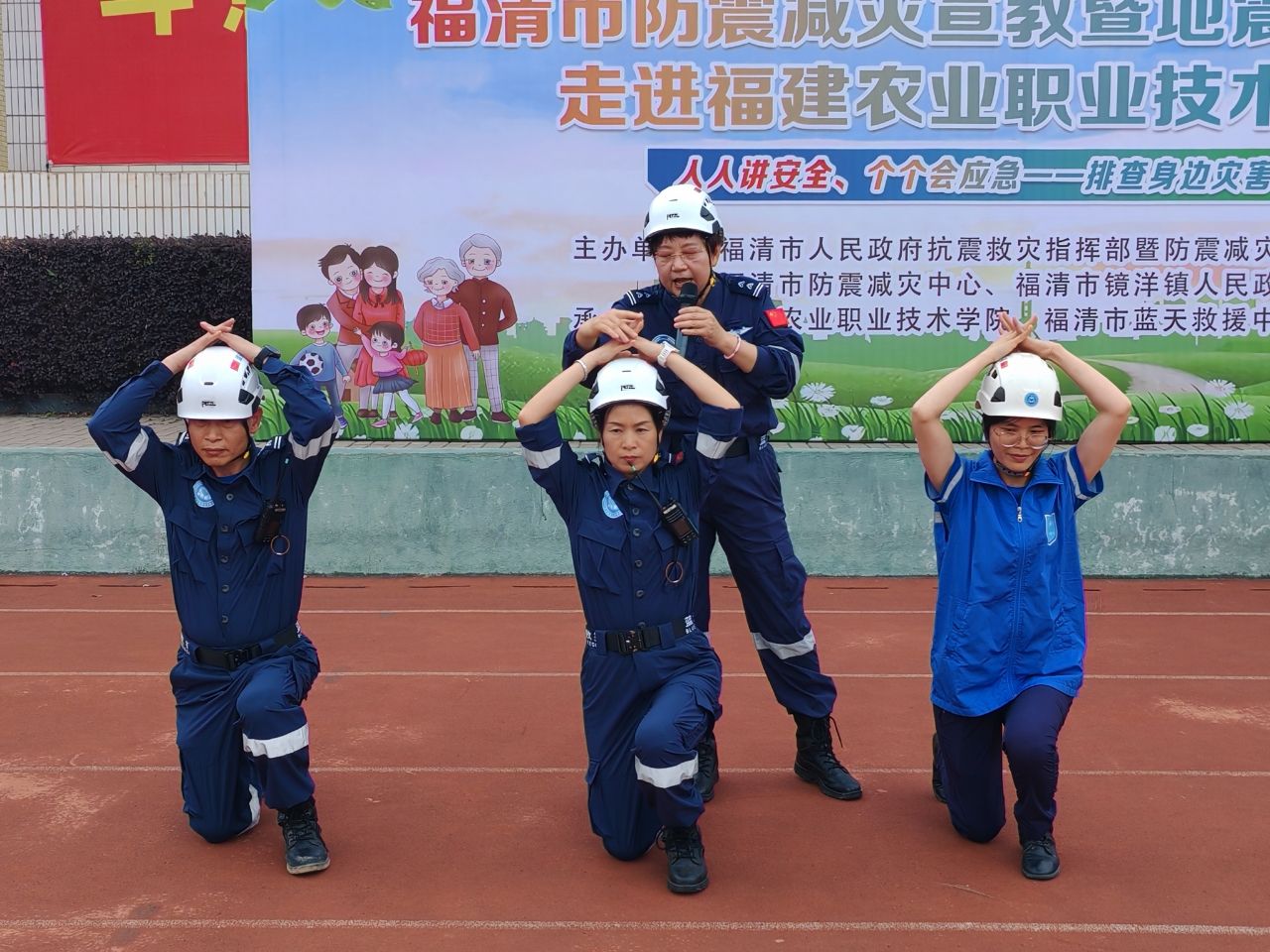 5月13日,由福清市人民政府抗震救灾指挥部暨防震减灾联席会议办公室、福清市防震减灾中心、福清市镜洋镇人民政府联合主办,福建农业职业技术学院、福清市蓝天救援中心共同承办的2025年“5·12”防灾减灾科普系列活动圆满举行。学院党委副书记王振亮,福清市防震减灾中心主任黄诚华,福清市镜洋镇人民政府党委政法委员、武装部部长林义金,福清市应急局张致楠等相关领导出席活动,学院各相关职能部门、二级学院师生1000多人踊跃参与。福清市蓝天救援队何建玲老师带领蓝天救援队成员为本次活动提供全程专业指导