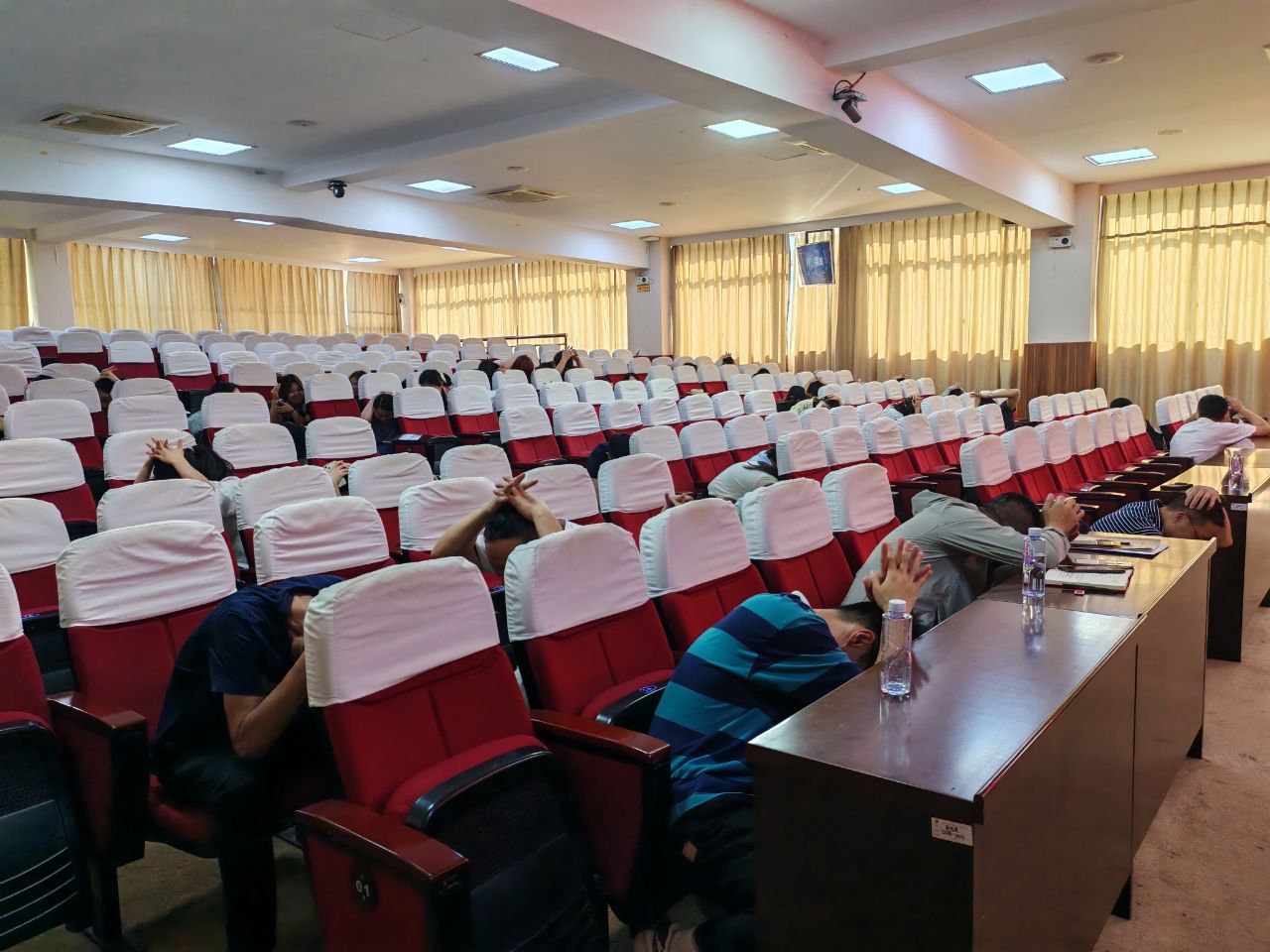 讲座结束后,紧接着开展了紧张而有序的地震应急演练。随着一声急促的模拟警报声骤然响起,参与演练的师生们迅速进入应急状态,按照防震避震“蹲下、抱头、抓牢”的口诀,迅速原地蹲下抱头,就近躲避在课桌或会议桌下,以躲避地震初期的强烈震动。当警报解除后,学院广播立即循环播放疏散信号,所有师生迅速反应,按照预先规划好的疏散路线,弯腰、护头,有序、快速地撤离至操场集合。在整个演练过程中,各班级、各部门紧密配合,师生们行动迅速、秩序井然,从警报响起至全体人员安全撤离至操场并完成人数清点,整个过程仅耗时约3分钟,充分展现了学院师生高效的应急反应能力和良好的组织纪律性。