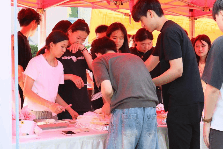传统中式糕点展台同样引人注目。蔡晨光、秦桂红两位老师指导的荷花酥、冰皮月饼等作品,将节气文化与面点美学结合,以“榴莲酥”模拟榴莲纹理、“茶果子”呼应茶道意境,吸引师生驻足拍摄。互动体验区中,师生亲手制作冰糖葫芦,感受劳动创造与味觉美学的双重愉悦。