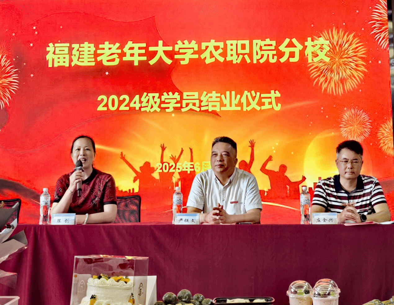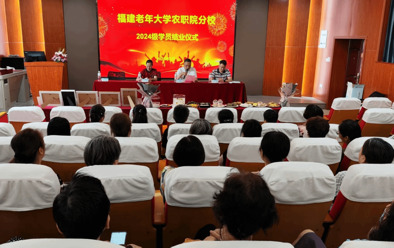 2025年6月11日上午,福建老年大学农职院分校2024级学员结业仪式在首山校区隆重举行。福建老年大学联络处三级调研员陈剑、福建老年大学农职院分校校长严挺文等领导出席活动,与全体师生共同见证银龄学子的学习成果。