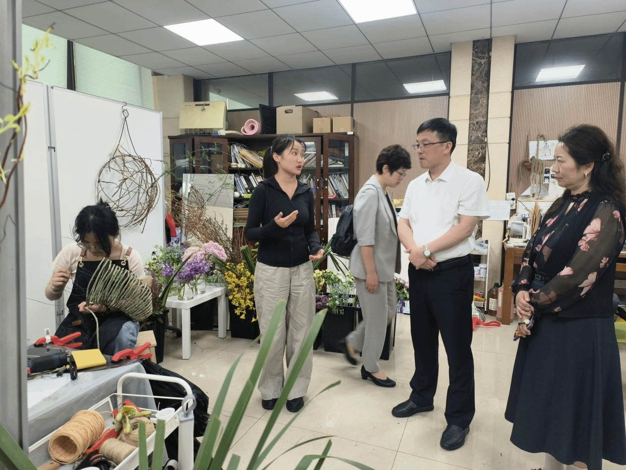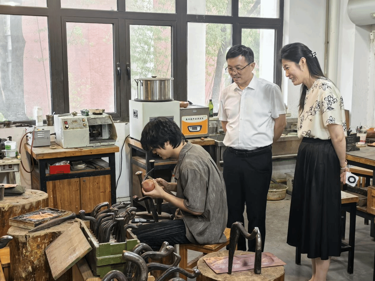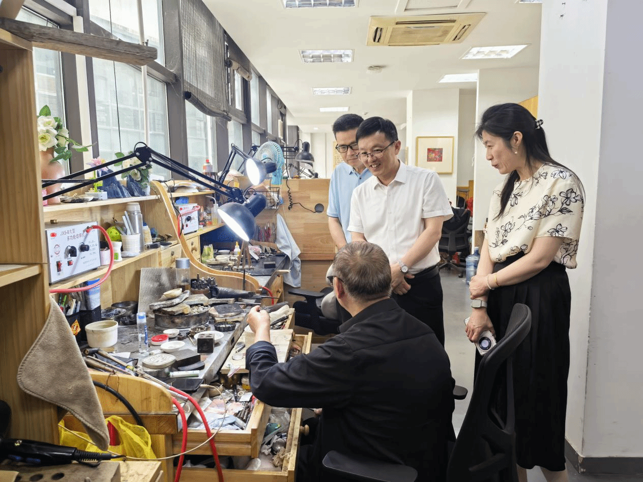 在上海工艺美术职业学院调研时,调研小组先后参观学习了上海工艺美术职业学院校史馆、博物馆、非遗技艺传承工作室等场所,该校创新育人模式,在传统工艺与现代科技融合、项目化教学、现代学徒制等方面的经验令人印象深刻。将企业真实项目深度融入教学,技能大师工作室通过产品研发实现知识产权收益反哺教学的创新机制,为学院深化教学改革、提升学生实践创新能力和省级技能大师工作室建设上提供了借鉴与思考。
