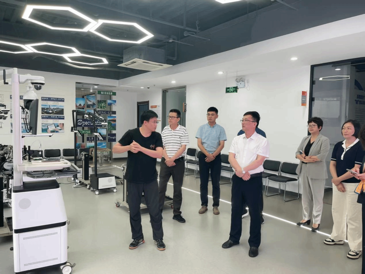 在景格科技股份有限公司调研时,作为同济大学科技园的高新企业,景格科技股份有限公司在职业教育信息化、智能化方面实力雄厚。调研小组深入学习了景格科技在师资培训、实训系统、校级AI平台建设等智能化平台,此次调研为学院在校企协同、人才培养、虚拟仿真教学等路径上提供了新思路。