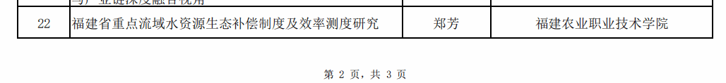 近日,福建省财政厅正式下达了《福建省财政厅关于2025年度福建省财政科研资助项目立项的通知》。经严格评审,我院郑芳老师领衔申报的“福建省重点流域水资源生态补偿制度及效率测度研究”项目成功获批立项,并获财政资助经费5000元。该课题的立项对推动学院相关专业的学科建设和产学研深度融合,切实助力地方生态经济可持续发展具有重要意义。
