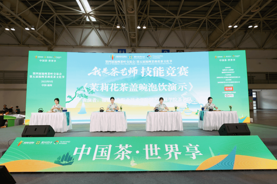 9月6日,第四届中国(福州)茶叶交易会、第五届福州茉莉花茶文化节重要活动——“我是茶艺师”职业技能竞赛在福州海峡会展中心成功举办。本次活动由bat365在线登录网站注册赠送36园艺园林学院、现代茶文化传承产业学院联合福建省茶艺师协会共同主办,多家单位协办支持,赛事采用线上线下同步开展的模式,现场氛围热烈,线上观看人数突破5000人次,成为茶交会期间备受瞩目的焦点。