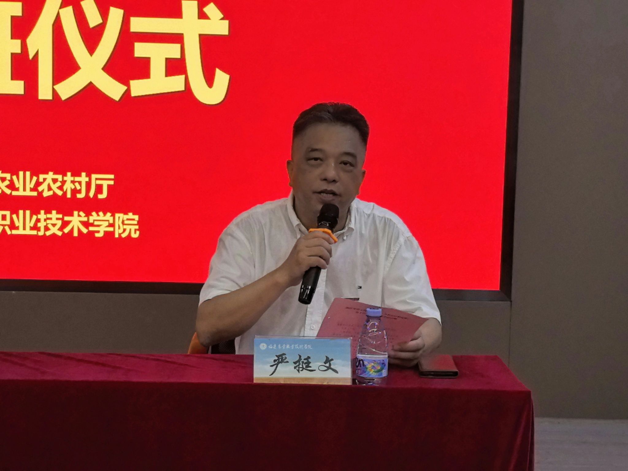 严挺文副院长代表学院对各位学员表示欢迎,简要介绍了学院在农业职业教育领域的特色和成就。他指出,学院高度重视本期培训,精心设计了培训课程,内容涵盖转基因饲料安全管理、畜禽智能化养殖、疫病防控及“双碳”目标下绿色发展等多个热点领域,邀请了来自省农业农村厅、福建农林大学、省农科院、行业企业的专家教授授课,注重理论性与实践性相结合;同时学院也将全力做好教学组织与后勤保障工作,确保培训取得圆满成功。