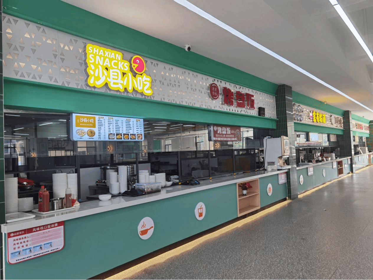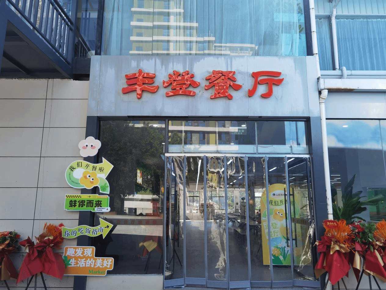 相思岭校区第一食堂(丰登餐厅)完成全面升级改造。改造后的餐厅采用通透隔断设计,搭配浅木色桌椅,营造出明亮舒适的用餐氛围;同时增设富有校企文化特色的“用餐文化留言墙”,为师生提供交流反馈平台,让用餐体验兼具功能性与人文性。
