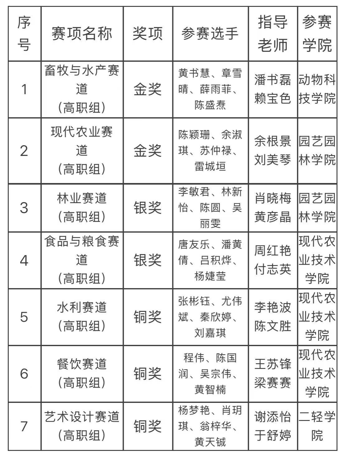 近日,2025年世界职业院校技能大赛总决赛争夺赛陆续落下帷幕。我院多支队伍代表福建省出征,在畜牧与水产、现代农业、林业、食品与粮食、水利、餐饮、艺术设计7个赛道中分别与全国百余支高职院校队伍同台竞技。经过多日激烈角逐,我院最终斩获金奖2项、银奖2项、铜奖3项,以优异成绩为我省职业教育争光,充分展现了我院高素质技术技能人才培养的丰硕成果。