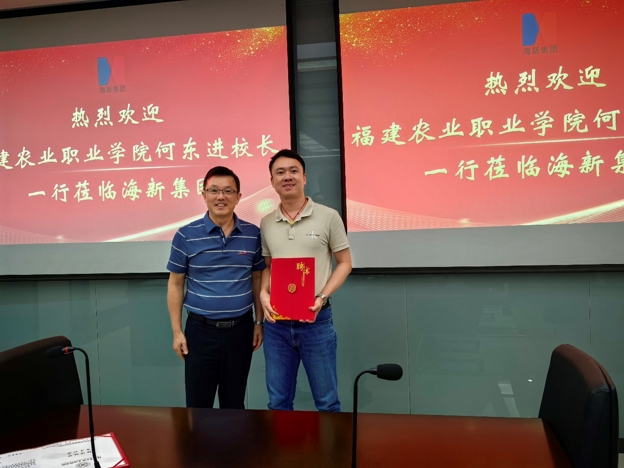何东进院长为海新集团林智勇颁发客座教授聘书