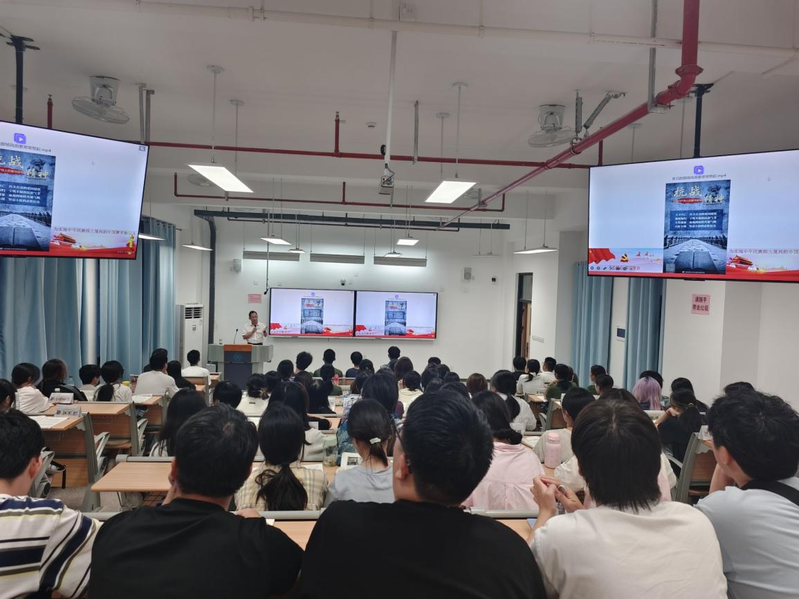 10月15日下午,学院党委副书记王振亮在动科楼603教室为二轻学院艺术设计2501、2502班学生讲授《纪念抗战胜利 坚定民族信念》专题思政课。
