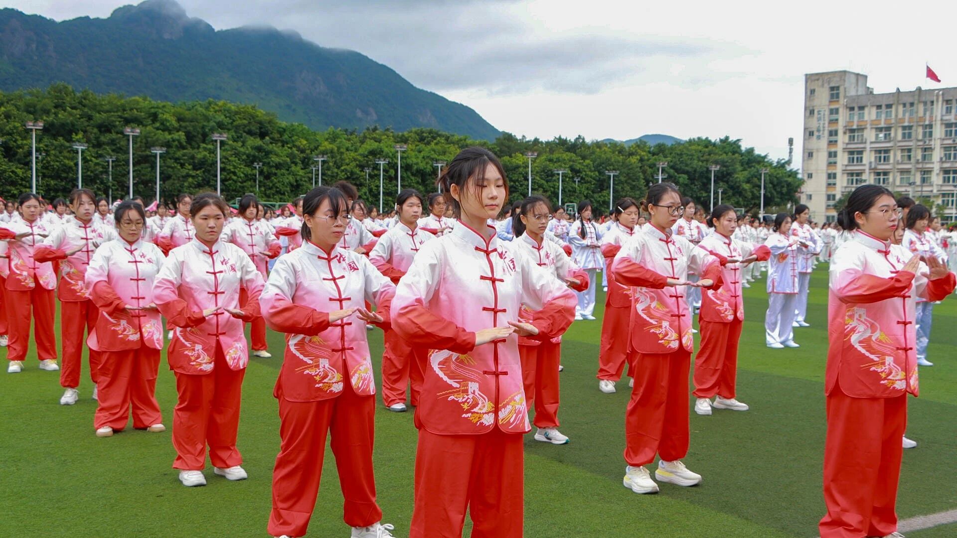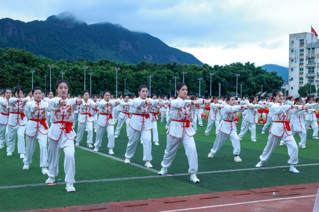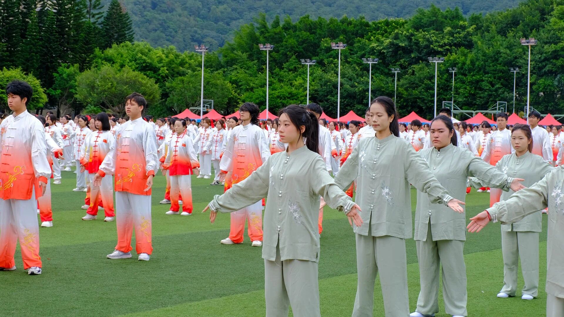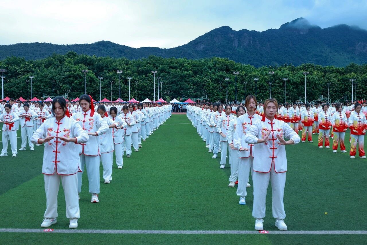 由800名学生共同展演的五禽戏成为全场焦点。虎之威猛、鹿之安舒、熊之沉稳、猿之灵巧、鸟之轻捷,在一招一式中完美呈现。作为学校体育教学特色项目,五禽戏既融合了传统中医养生智慧与现代体育理念,也是“传统文化进校园”的典型实践,充分体现了体育与美育的共生共融,为开幕式注入了深厚的文化底蕴。