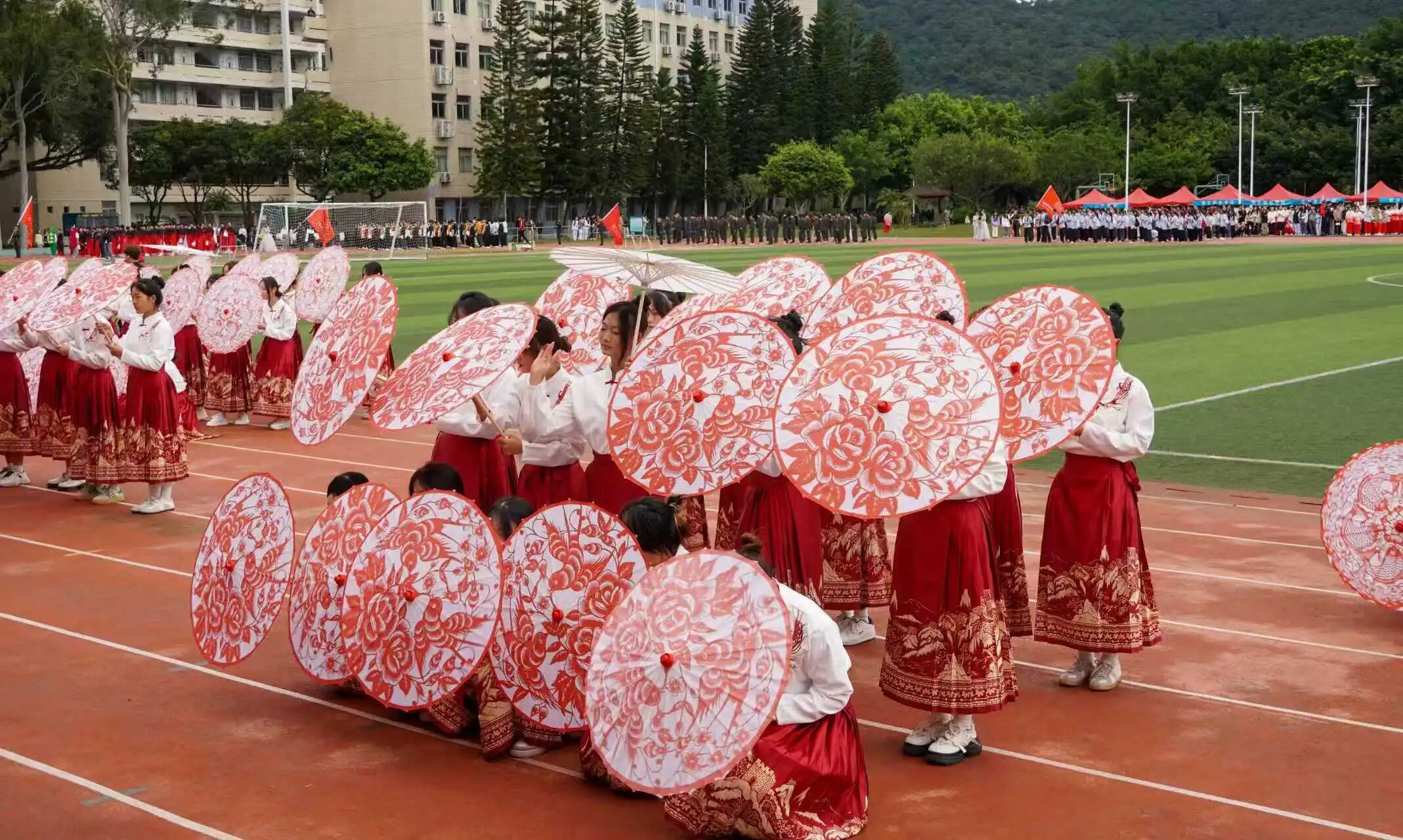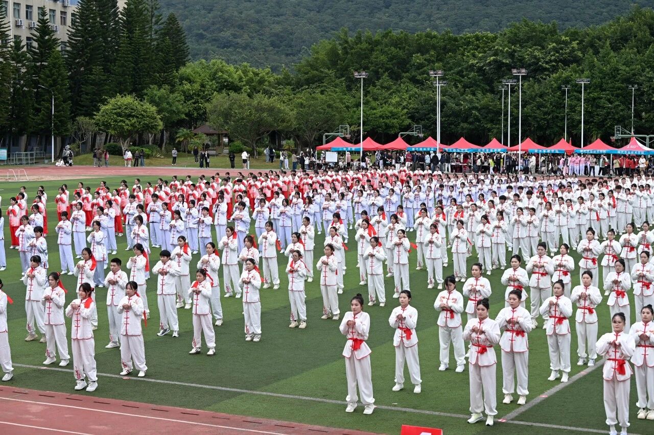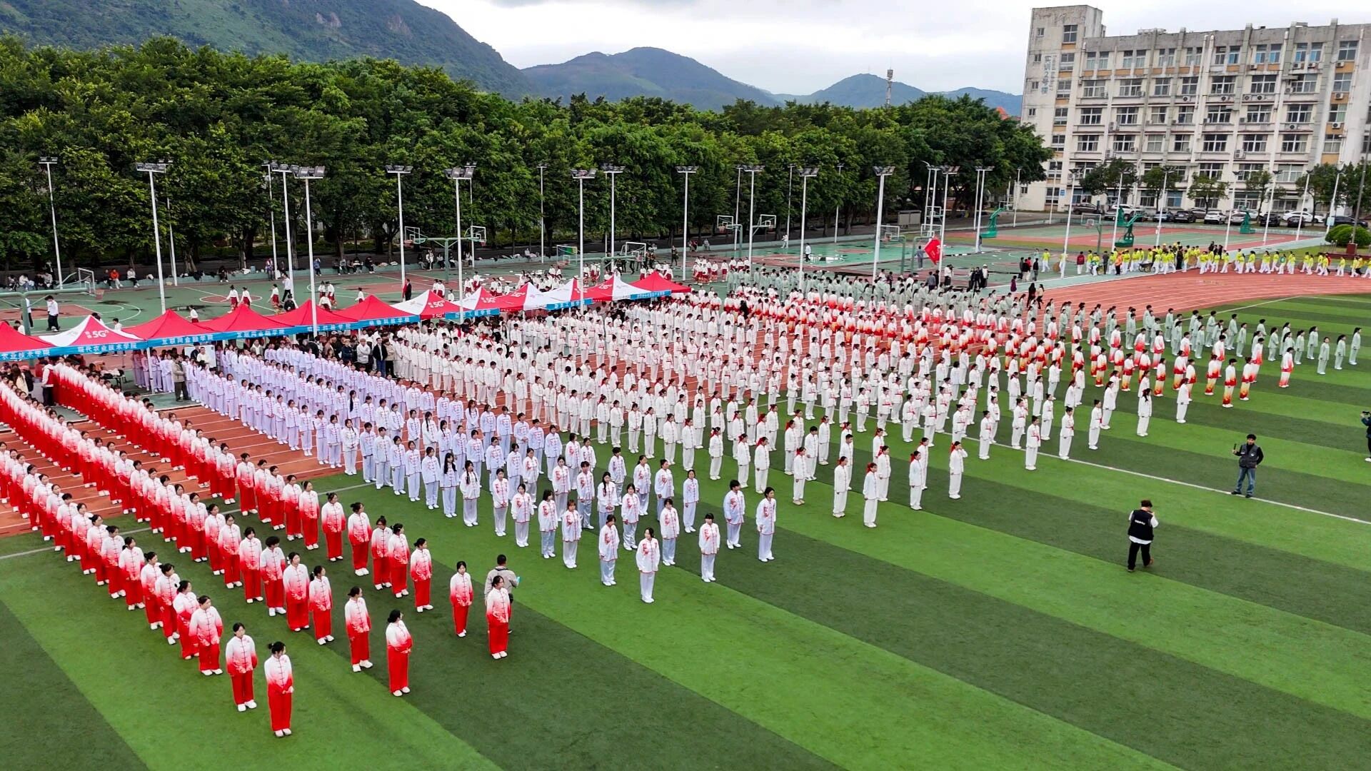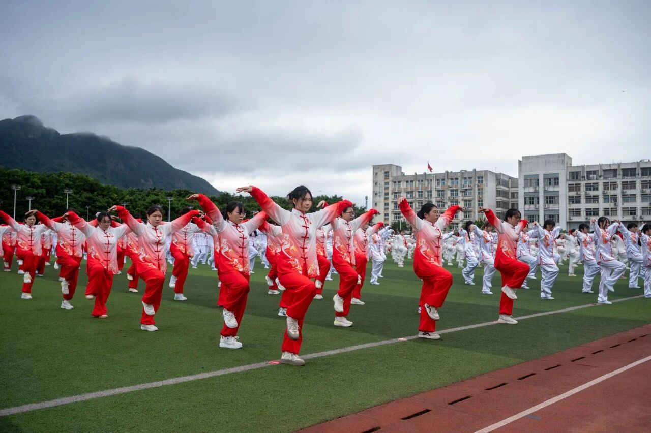 由800名学生共同展演的五禽戏成为全场焦点。虎之威猛、鹿之安舒、熊之沉稳、猿之灵巧、鸟之轻捷,在一招一式中完美呈现。作为学校体育教学特色项目,五禽戏既融合了传统中医养生智慧与现代体育理念,也是“传统文化进校园”的典型实践,充分体现了体育与美育的共生共融,为开幕式注入了深厚的文化底蕴。