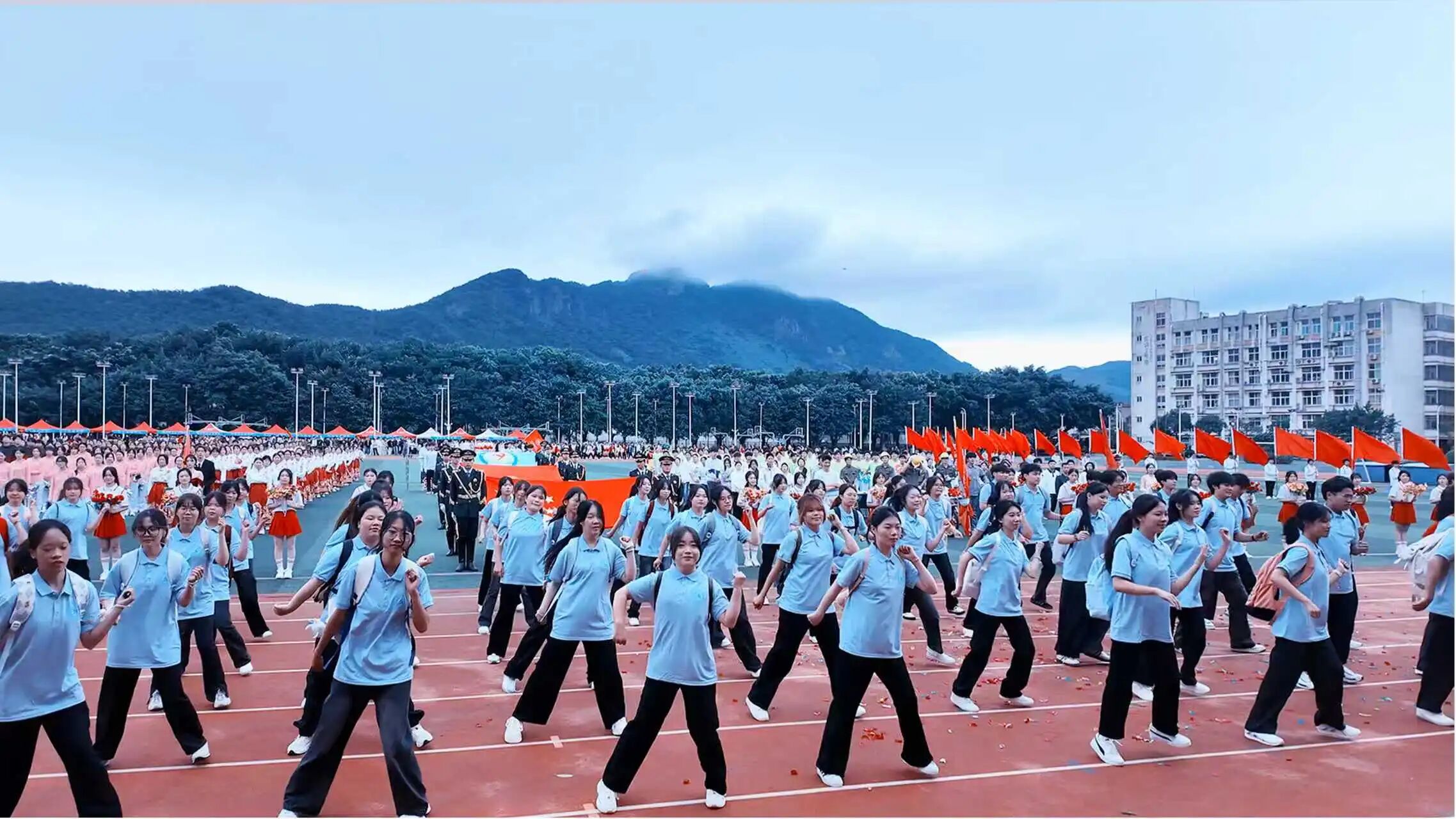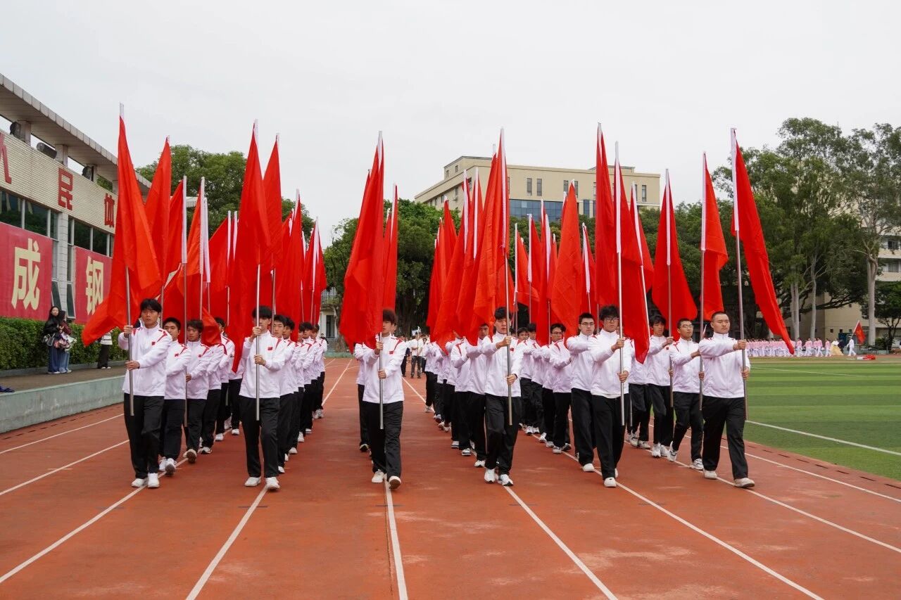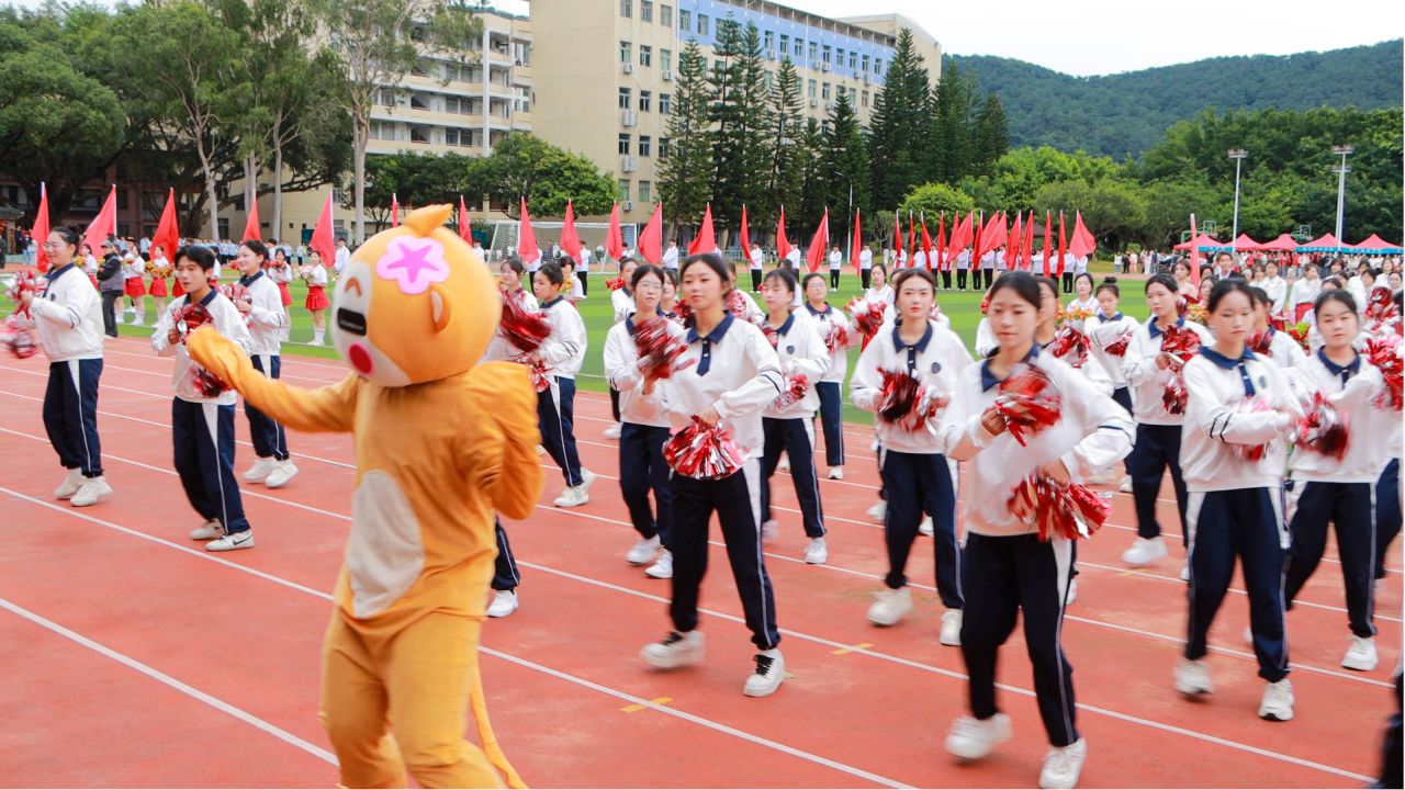 在庄严的国歌声中,五星红旗迎着朝阳冉冉升起,正式拉开运动会序幕。校长何东进在开幕式致辞中强调,学校始终坚持以习近平总书记关于教育、体育的重要论述为根本遵循,将体育工作系统融入“五育并举”总体格局,以“校园体育文化节”为载体,持续构建协同发展的品牌活动体系,着力营造“人人爱体育、处处有体育、时时享体育”的校园体育文化氛围。同时,何东进校长对全体师生提出三点期望:运动员应发扬奥林匹克精神,勇于挑战自我、追求卓越;裁判员须严守规则、公正执裁;观赛师生要文明参与、互助友爱,共同将运动会打造为“立德树人”的生动实践课堂。