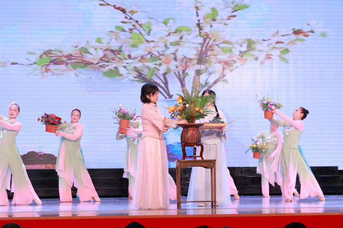 本次专场演出是福建老年大学建校40周年系列活动的重要组成部分,旨在全面展示各分校、教学点的办学成果与老年学员的精神风貌。我院高度重视,积极响应,精心遴选并报送了优秀原创节目——由肖晓梅与李巧燕老师联合创作的花艺展示《松菊延年》。节目将传统花艺与美好寓意完美融合,技艺精湛,意境高雅,赢得了福建老年大学领导及广大观众的高度评价与热烈掌声。