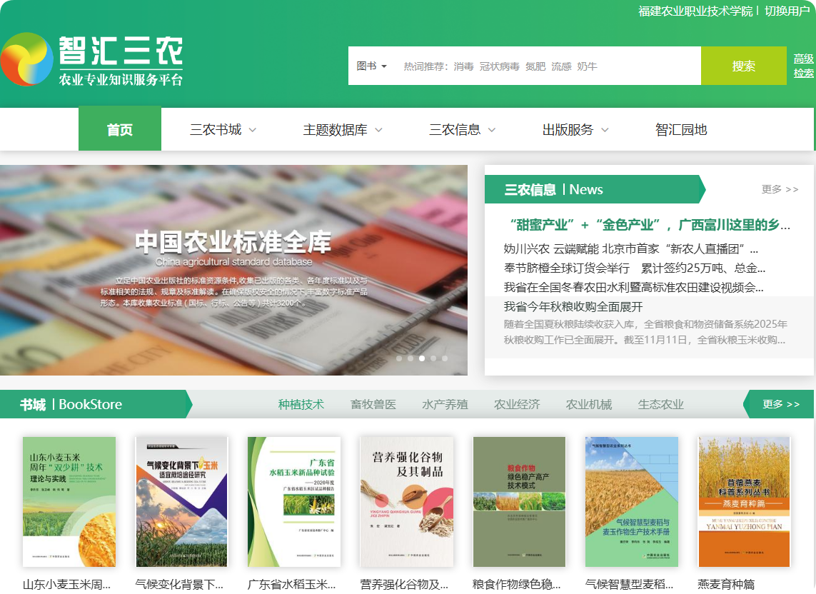 由中国农业出版社打造的农业科技数字智库,整合约2万种农业图书、210万条结构化知识及1.2万分钟教学视频,形成覆盖农艺学、畜牧兽医等9大主题的立体化资源库。农业专业领域的图片约14万张,涵盖各养殖动物种类、各种植物品种、植物病虫草害、畜牧兽医等领域。年更新1200种图书资源,成为实施乡村振兴战略的重要数字支撑。