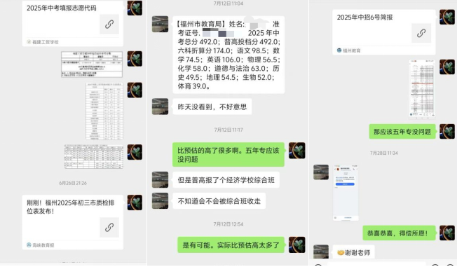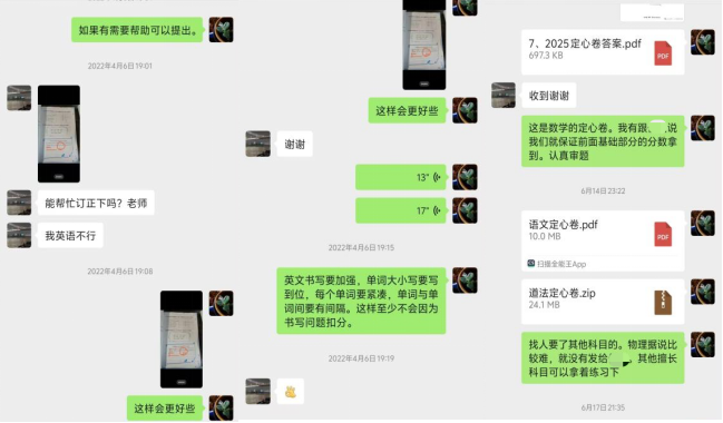 在帮扶过程中,通过及时掌握吴同学的学习状况与成绩,不断探索她的兴趣,支部教师线上线下积极与吴同学家人沟通,为她的中考志愿的填报提供“冲稳保垫”策略指导。