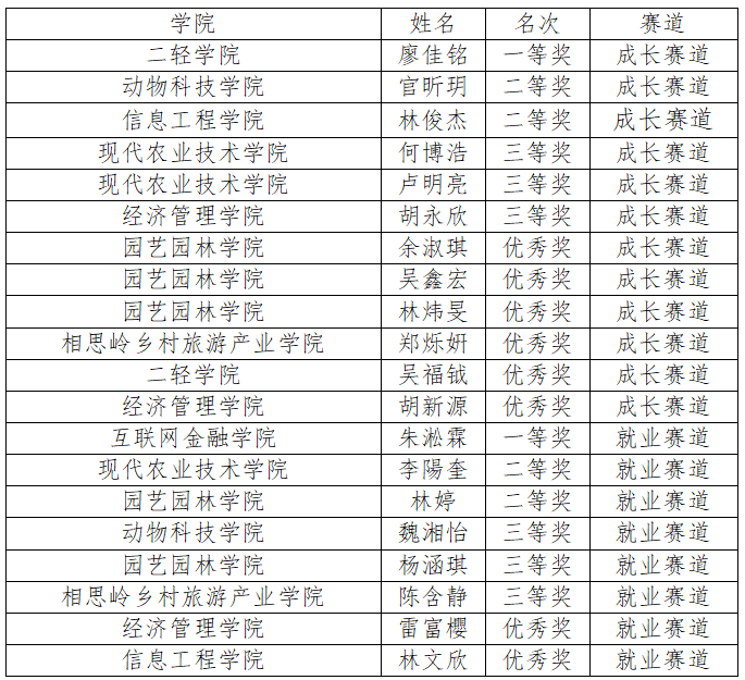 经过激烈角逐,本次决赛成长赛道与就业赛道获奖名单如下: