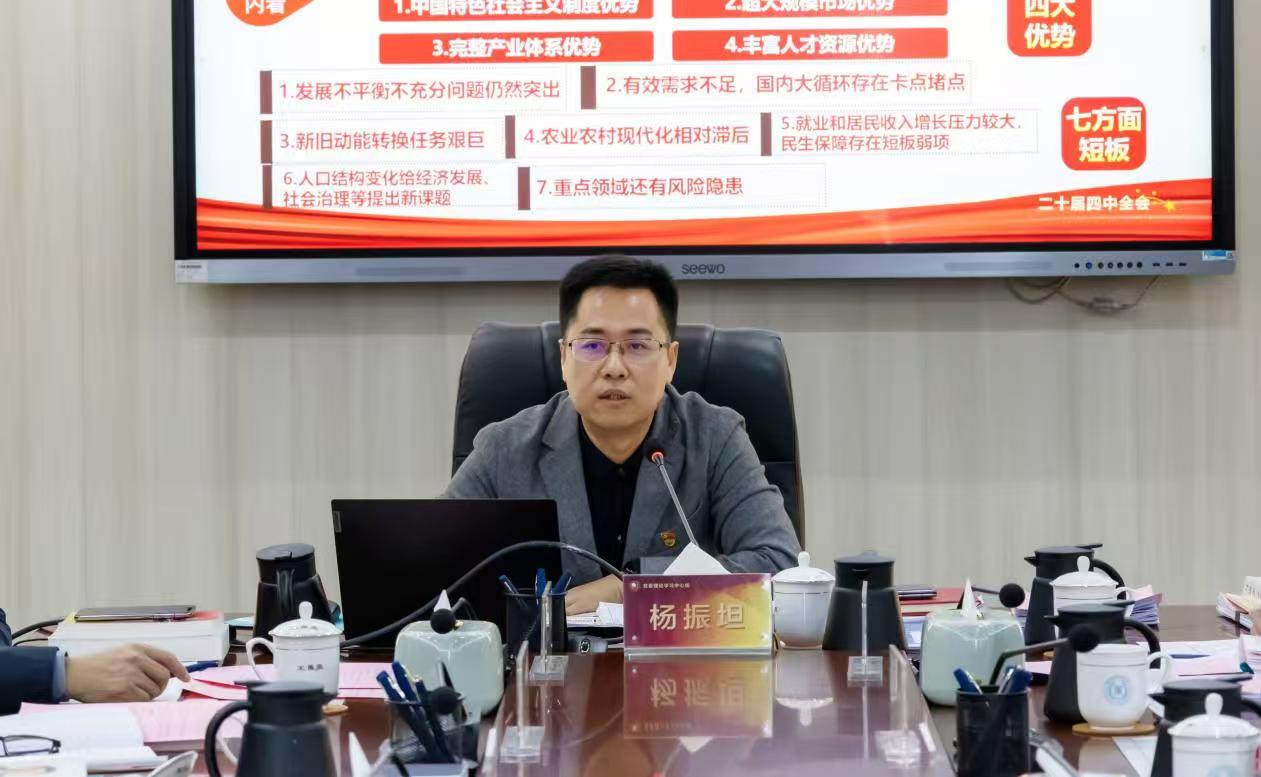 杨振坦在宣讲中指出,学习贯彻党的二十届四中全会精神是当前和今后一个时期的重大政治任务。他强调,全院上下要坚持原原本本学、融会贯通悟、联系实际思、扎扎实实做;要深刻领悟“两个确立”的决定性意义,增强“四个意识”、坚定“四个自信”、做到“两个维护”;要自觉将学院发展融入国家与福建发展大局,特别是要紧密对接“十五五”规划中对教育、科技、人才及农业农村工作的部署要求,找准办学定位,突出农业职教特色,深化教育教学改革,提升人才培养质量和社会服务能力,为谱写中国式现代化福建篇章贡献bat365力量。