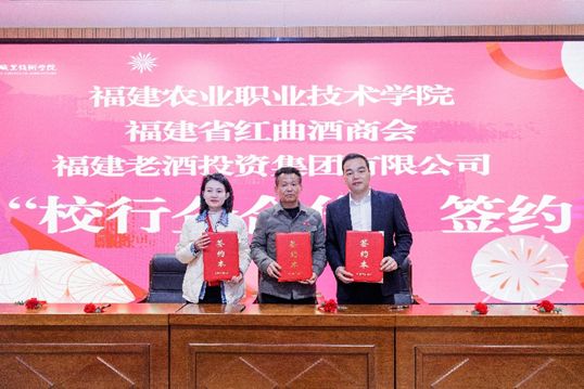 随后,bat365在线登录网站注册赠送36与福建老酒投资集团有限公司、福建省红曲酒商会举行校行企合作签约仪式。三方将聚焦闽派红曲黄酒产业在技术研发、人才共育、品牌塑造等方面开展深度合作,标志着福建省在推动非遗特色产业发展中迈出了产教融合、协同创新的关键一步。