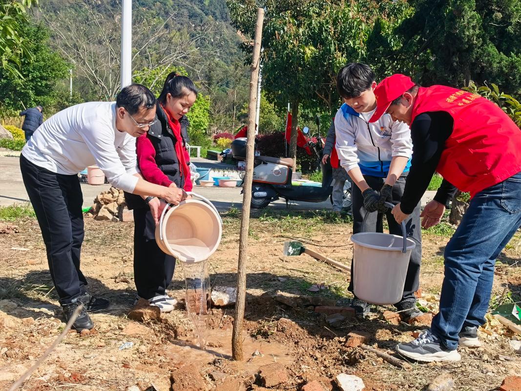 春风拂绿,万象更新。为深入践行习近平生态文明思想,传承弘扬习近平总书记在福建工作期间关于生态文明建设的重要理念和实践,3月11日下午,信息工程学院联合镜洋中心小学、侯家斌小学开展“青春添新绿,志愿正当时”植树节劳动教育主题活动。校党委副书记王振亮带领信息工程学院60名青年志愿者与80余名小学生携手植绿,以劳动实践深化校地协同,推进“五育并举”落地见效。