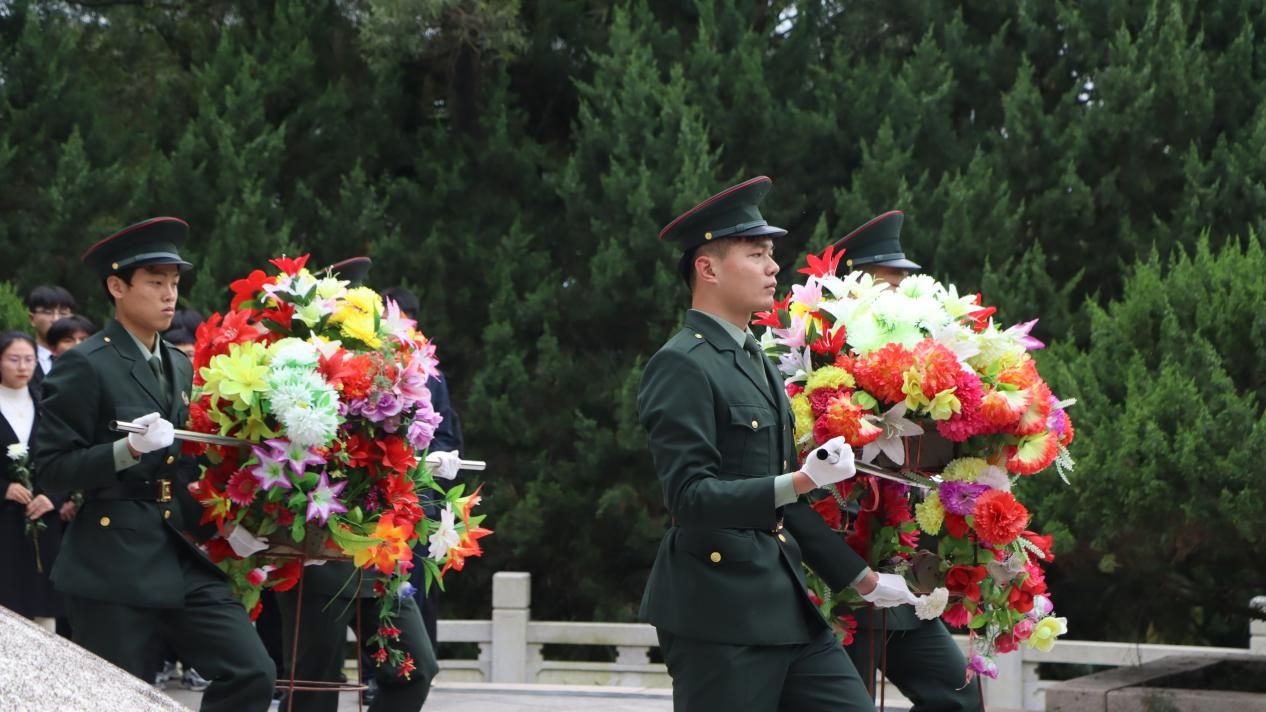 学院国旗护卫队礼兵敬献花篮