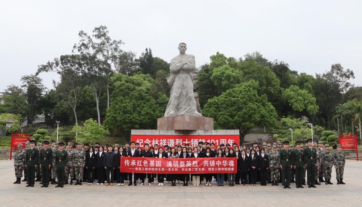 风骨犹存英雄壮,百年犹怀先烈情。2024年4月10日,信息工程学院学生第一党支部、学生第二党支部、两委学生干部代表、国旗护卫队、团支部代表、青年志愿者协会分会等共计100余人前往林祥谦陵园开展“传承红色基因——清明祭英烈 共铸中华魂”清明祭扫活动,重温革命先烈光辉事迹,寄托清明深切哀思。