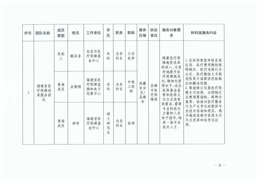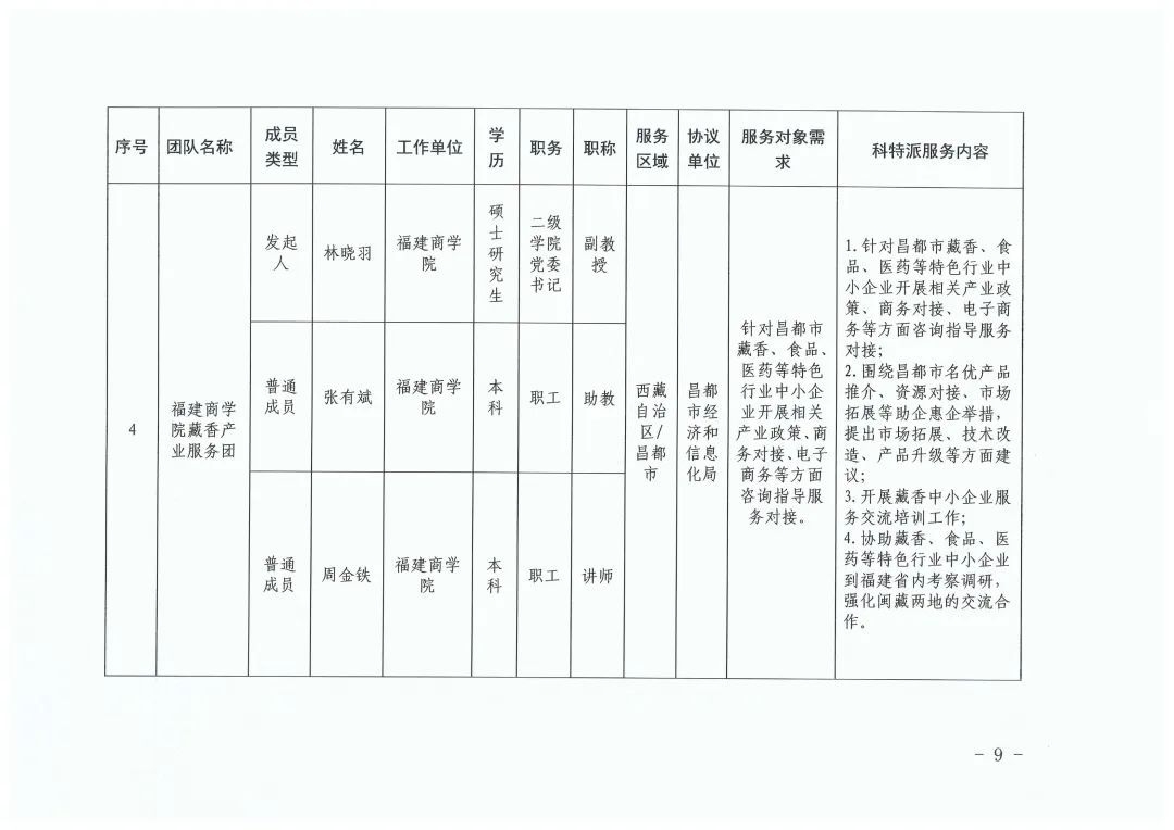 福建省第十批援藏工作队、昌都市有关部门和科技需求单位负责科技特派员入藏现场服务的管理和保障,我厅将配合对科技特派员开展科技援藏情况进行跟踪和考核。