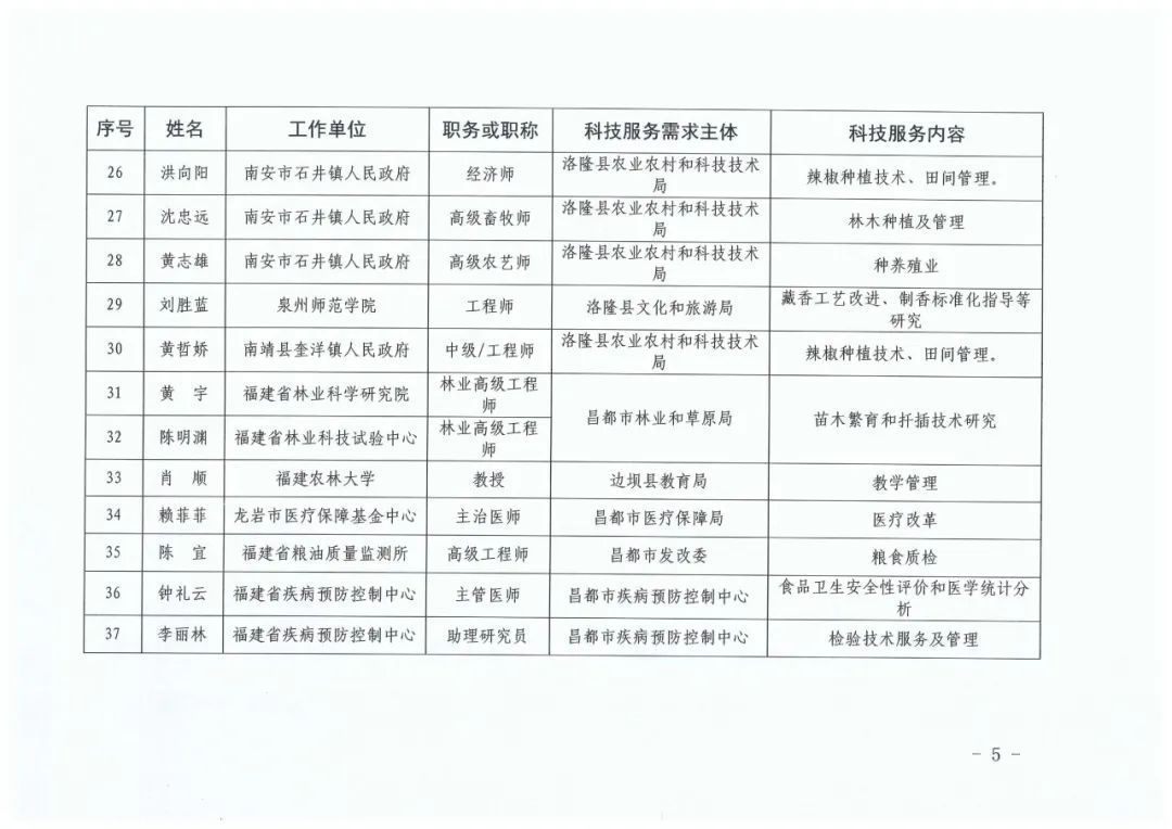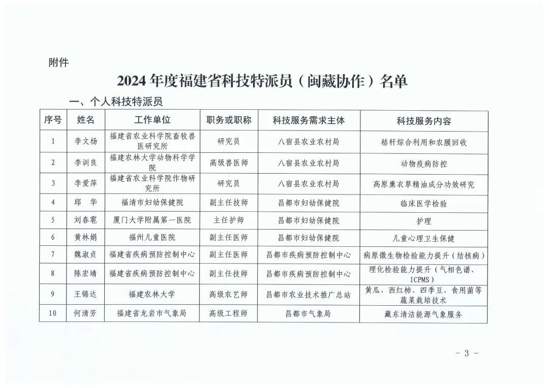 附件:2024年度福建省科技特派员(闽藏协作)名单