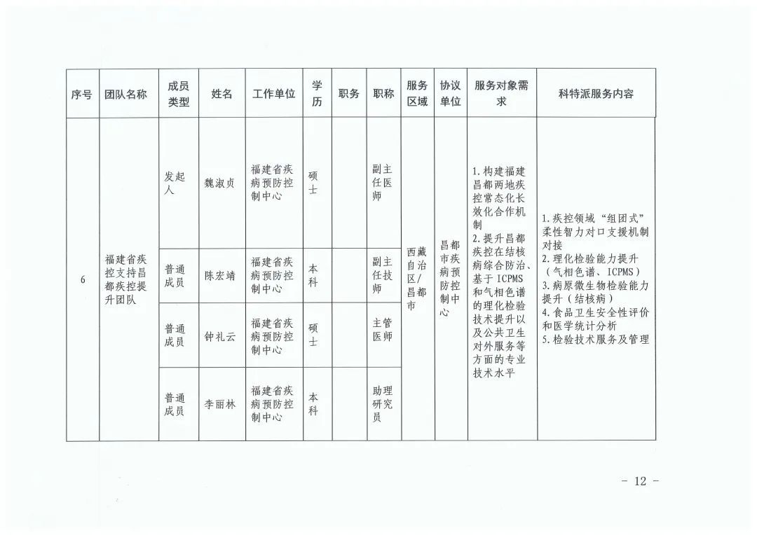 根据《福建省科学技术厅关于开展2024年福建省科技特派员(闽藏协作)选认工作的通知》(闽科农函〔2024〕68号),经个人申报、西藏昌都市需求单位筛选、福建省第十批援藏工作队与昌都市科技局分别审核确认、省科技厅研究,决定选认2024年度福建省科技特派员(闽藏协作)个人科技特派员37名、团队科技特派员6组(名单详见附件,同时公布在福建省科技特派员服务云平台门户网站,网址:http://www.fjktp.cn)。