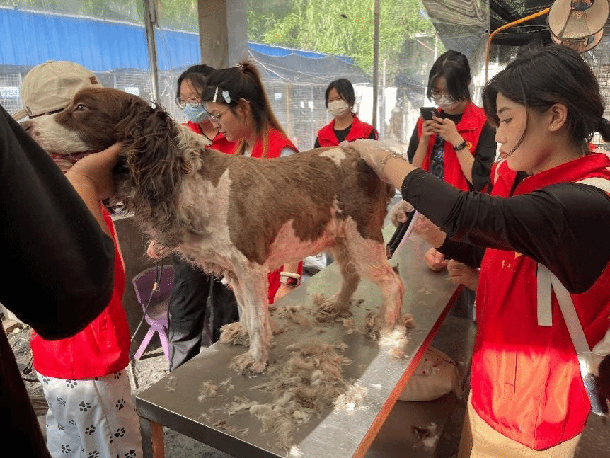 5月17日,37名师生志愿者走进福建省素馨小动物保护中心,化身“爱心美容师”为127只流浪动物实施诊疗护理时,专业手套上沾满的不仅是药浴泡沫,更是“生命至上”的职业信仰。