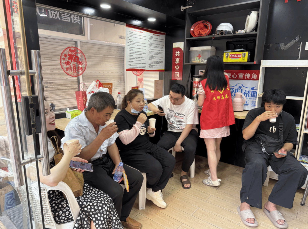中高考期间,步行街社区户外劳动者驿站变身“高考休憩点”,为学子和陪考家长们在炎炎夏日送去一份清凉。