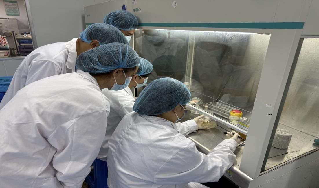 走进bat365在线登录网站注册赠送36微生物实验室,显微镜下稻曲霉菌的孢子形态被科研人员细致记录。培养皿中,不同配方的生物菌剂正在进行筛选:技术人员通过调整菌种配比、优化发酵工艺,研发出多组候选配方,并在模拟水稻生长周期的环境中测试抑菌效果。“每天要记录上百组数据,浓度、温度、作用时间都不能出错。”实验人员介绍,经过数十次配方迭代,一组高效生物菌剂在实验室验证中表现突出。