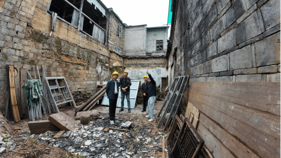 魏锋正和同事现场勘察,维护修缮古建